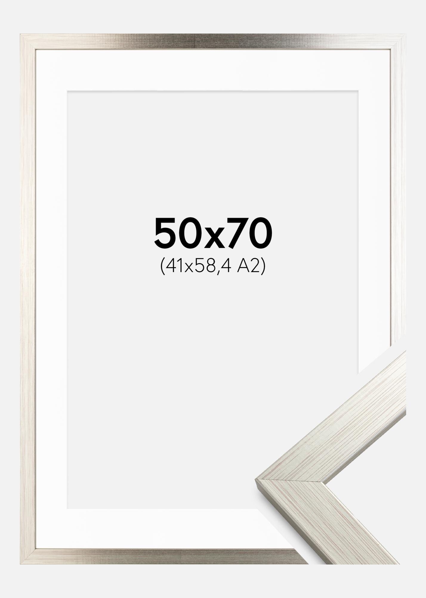 Rama Srebrny Wood 50x70 cm - Passe-patrout Biały 42x59,4 cm (A2)