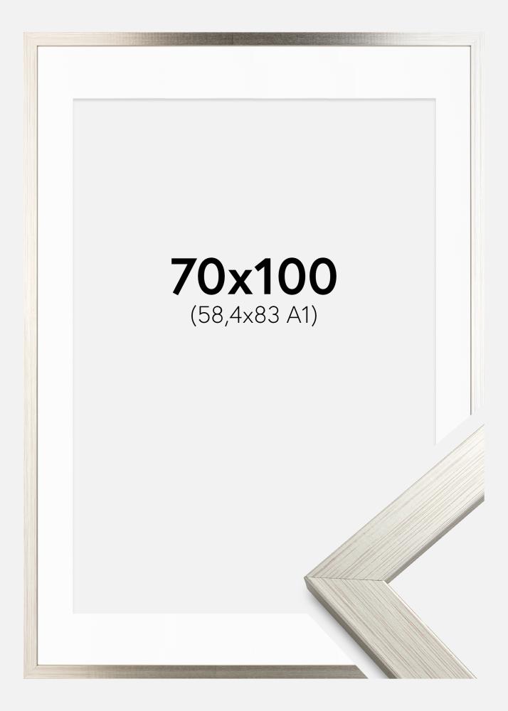 Rama Srebrny Wood 70x100 cm - Passe-patrout Biały 59,4x84 cm (A1)