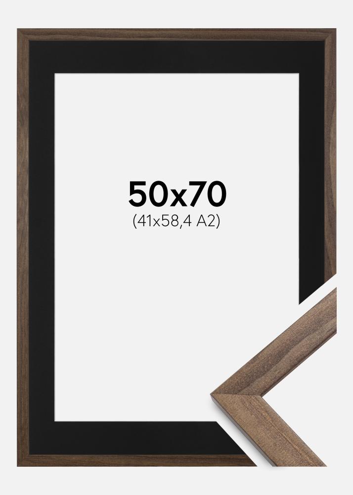 Rama Stylowy Orzech 50x70 cm - Passe-patrout Czarny 42x59,4 cm (A2)