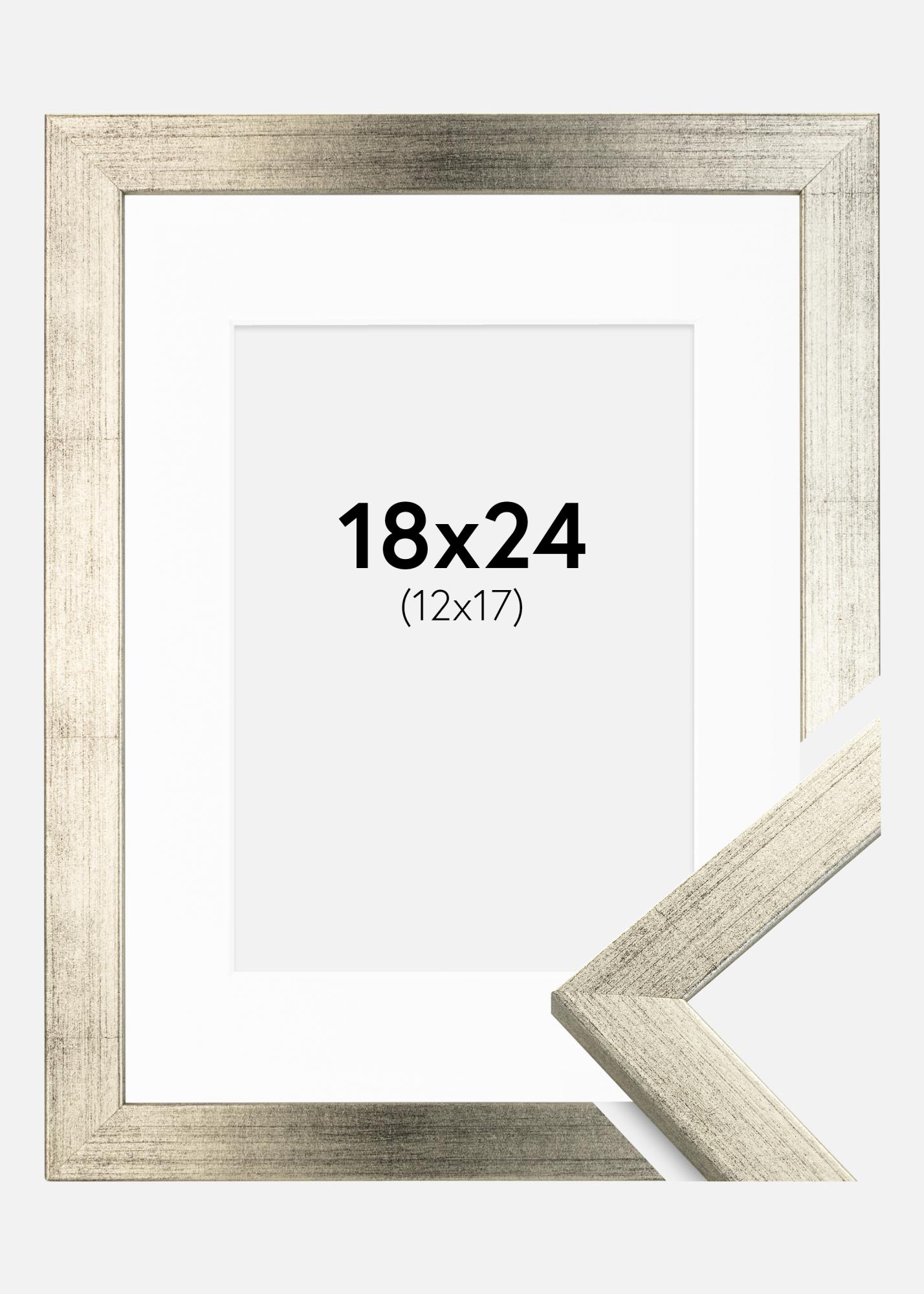 Rama Stylowy Srebrny 18x24 cm - Passe-patrout Biały 13x18 cm