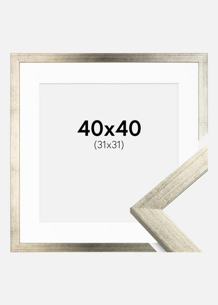 Rama Stylowy Srebrny 40x40 cm - Passe-patrout Biały 32x32 cm
