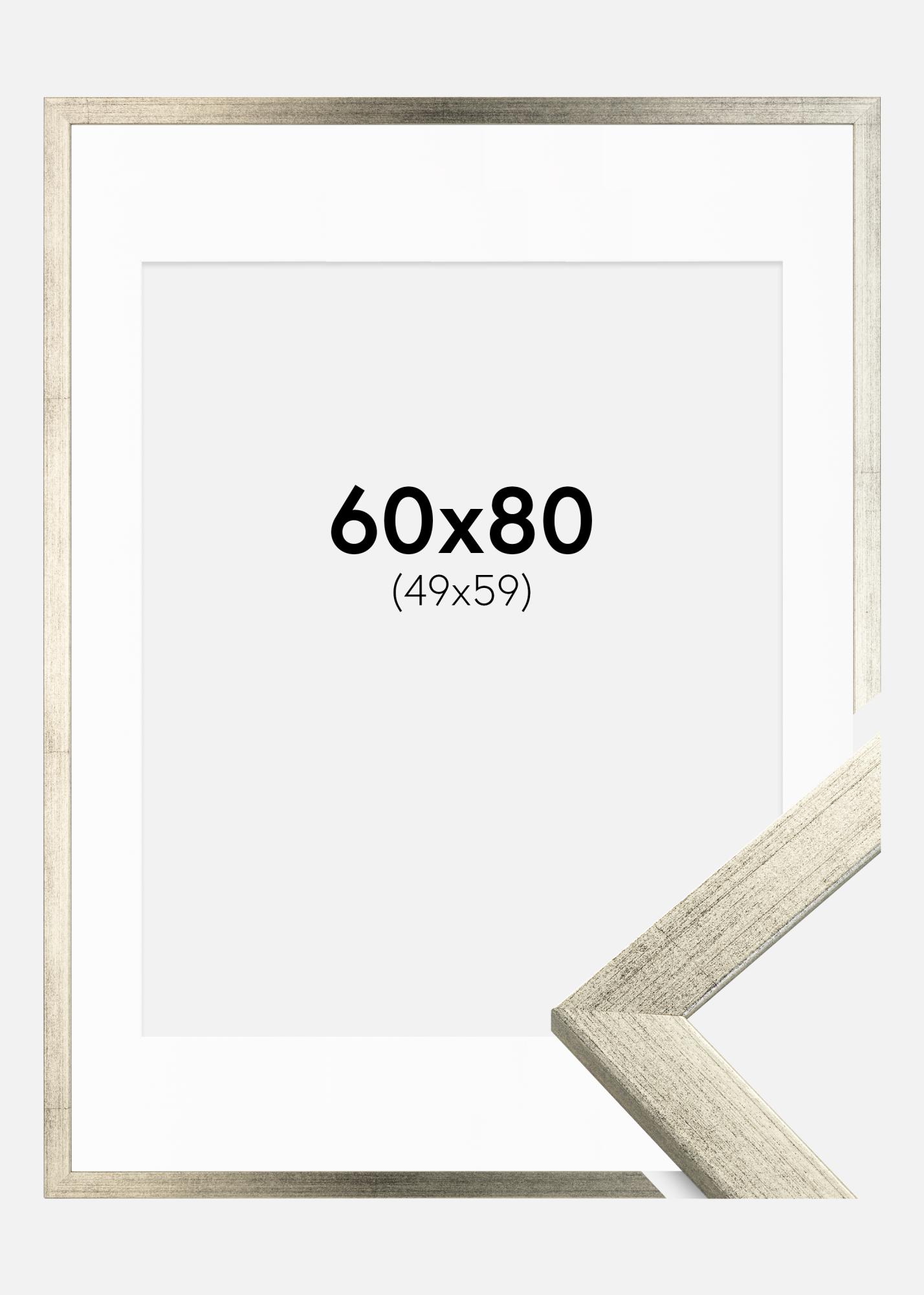 Rama Stylowy Srebrny 60x80 cm - Passe-patrout Biały 50x60 cm