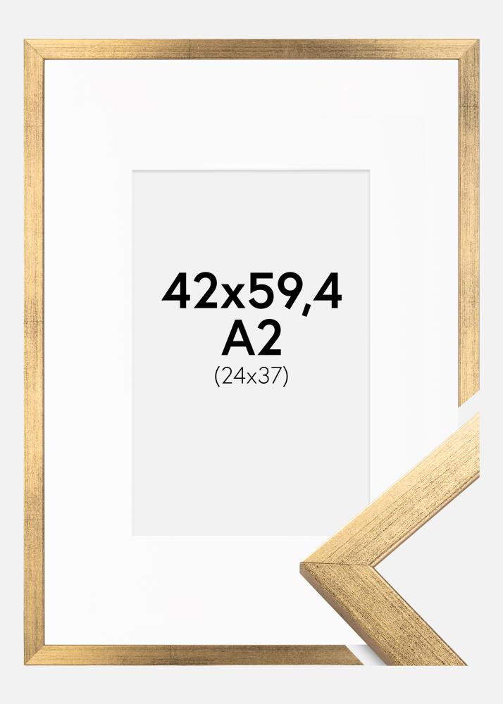 Podkreśl swoje zdjęcie w elegancki sposób z naszą złotą ramą wyposażoną w białe passe-partout. Ta rama nadaje Twojemu obrazowi 25x38 cm dodatkowy wymiar głębi i skupienia, podczas gdy biała passe-partout tworzy wyraźny kontrast, który przyciąga wzrok obserwatora. Matowy złoty odcień ramy dodaje luksusowego charakteru Twojemu wnętrzu, a jej szerokość 20 mm w połączeniu z głębokością 15 mm zapewnia stabilne i stylowe oprawienie.
