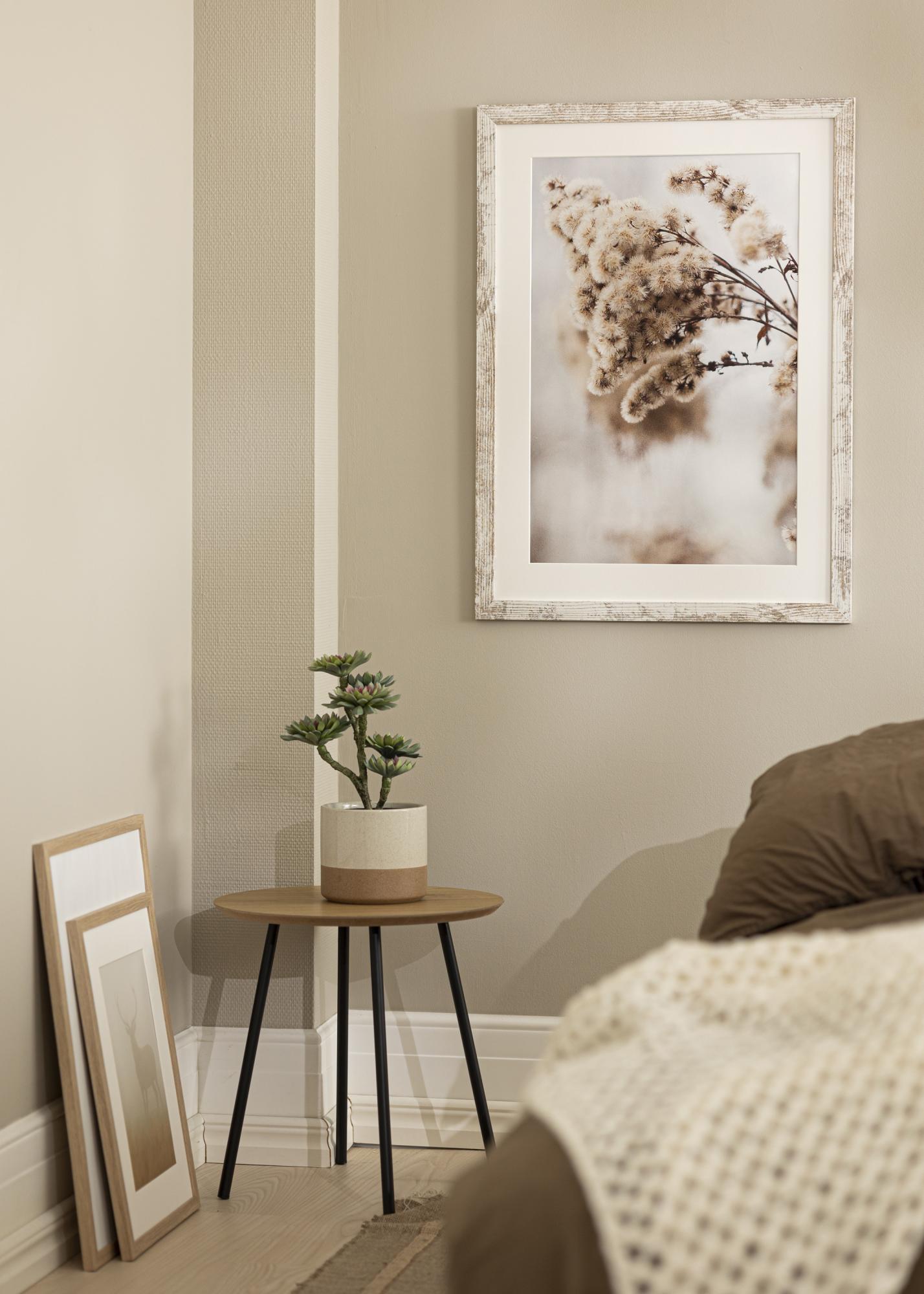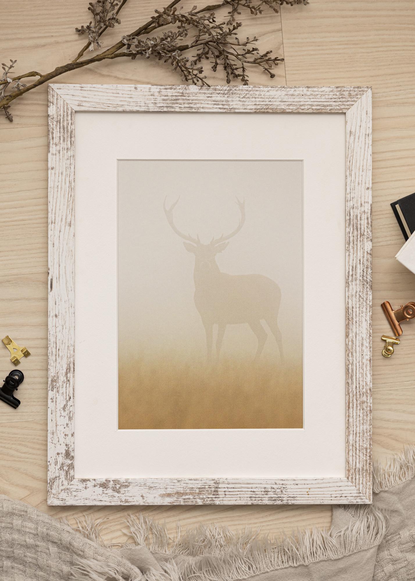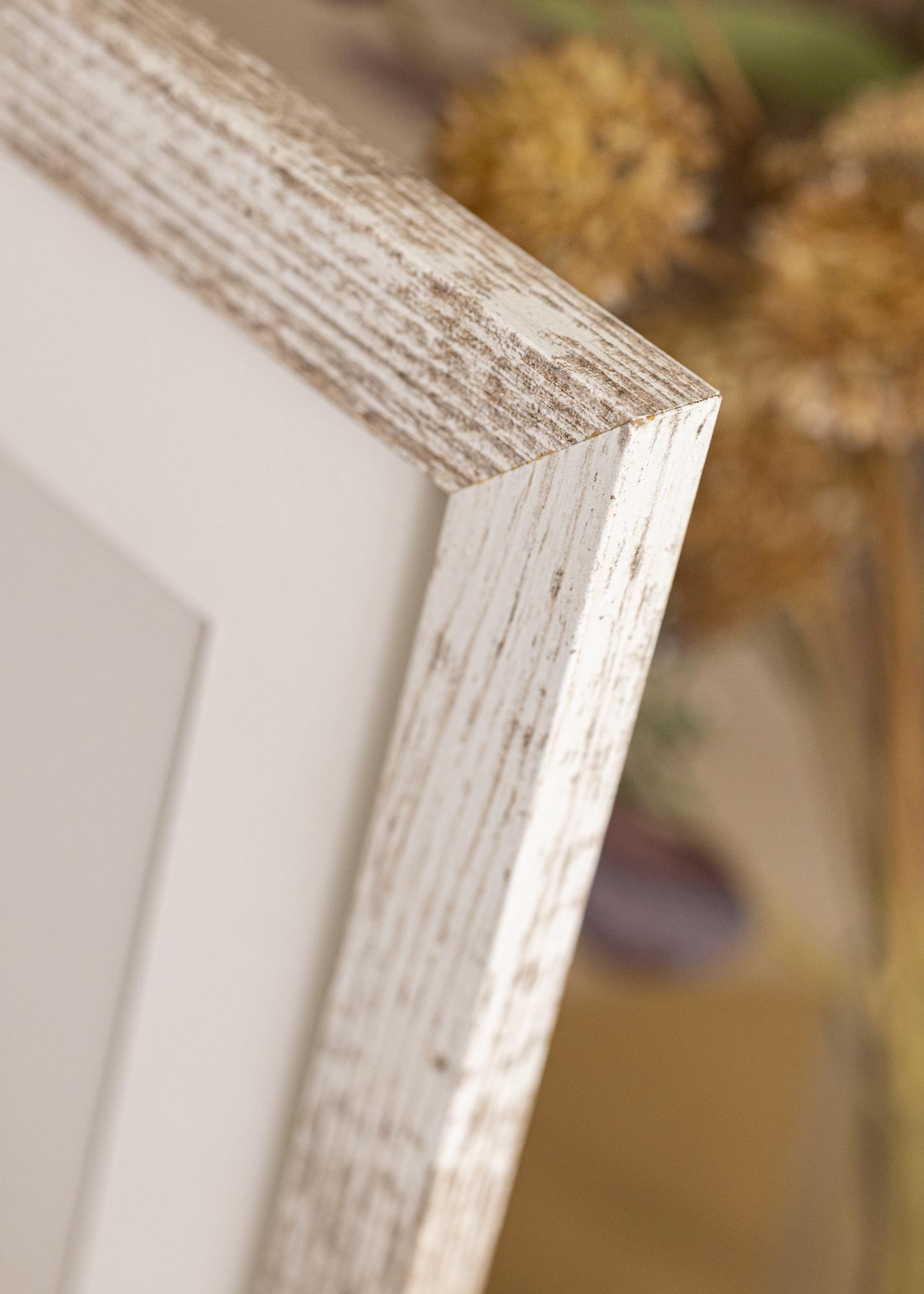 Stylowa rama vintage z szerokim profilem ramki i postarzałym wyglądem w bieli i drewnie. Dodaje dodatkowy wymiar do twoich zdjęć i idealnie pasuje, gdy chcesz uzyskać ramę z autentycznym uczuciem vintage.