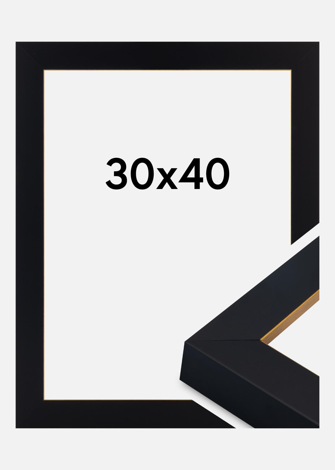 Ta elegancka Rama doskonale podkreśli Twoje ulubione motywy w rozmiarze 30x40 cm. Nowoczesny i stylowy design łączy gładką, błyszczącą powierzchnię w kolorze Czarny z elegancką, złotą krawędzią. Wąski profil nadaje całości prosty, graficzny charakter, pozwalając motywowi grać główną rolę – to świetny wybór zarówno do zdjęć, jak i plakatów.