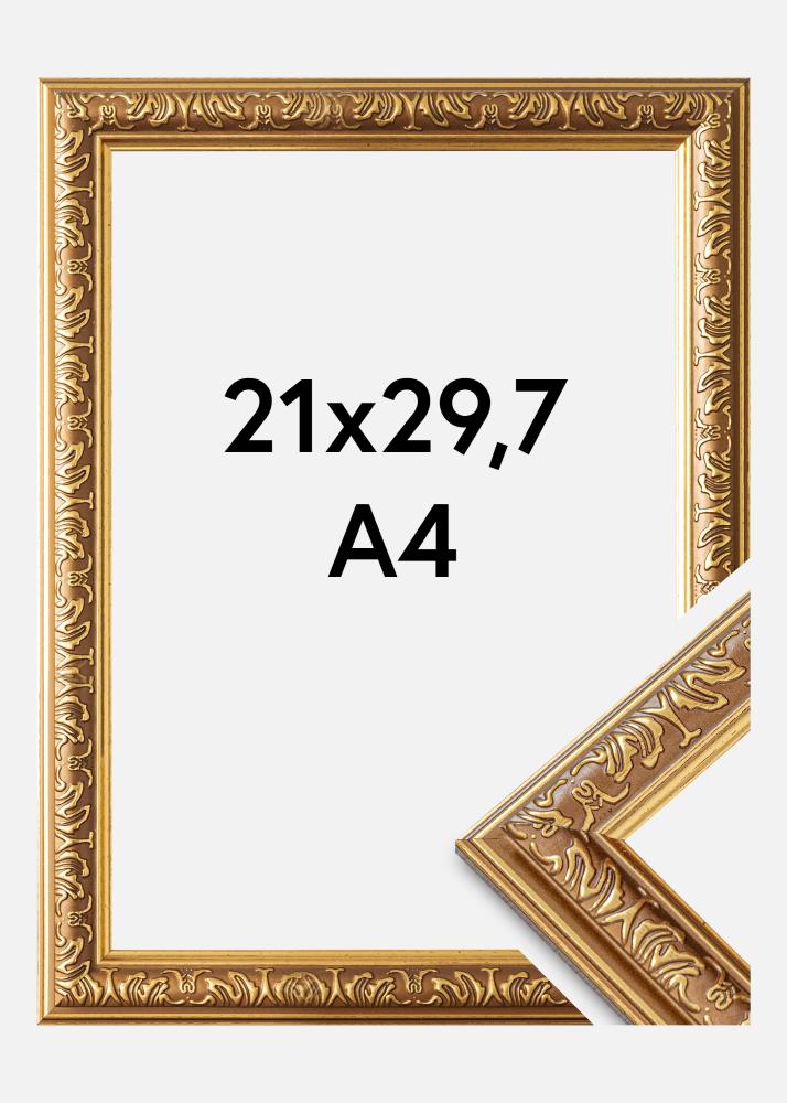 Ta ramka na zdjęcia o wymiarach 21x29,7 cm (A4) to doskonałe połączenie klasycznej elegancji i nowoczesnej funkcjonalności. Dzięki luksusowemu, złotemu wykończeniu i dekoracyjnym, ozdobnym detalom, dodaje wyrafinowanego akcentu każdemu dziełu sztuki lub fotografii. Skomplikowane wzory wzdłuż wewnętrznej krawędzi ramki tworzą tradycyjne i ponadczasowe odczucie, co czyni ją idealną zarówno do klasycznych, jak i eleganckich stylów wnętrz.