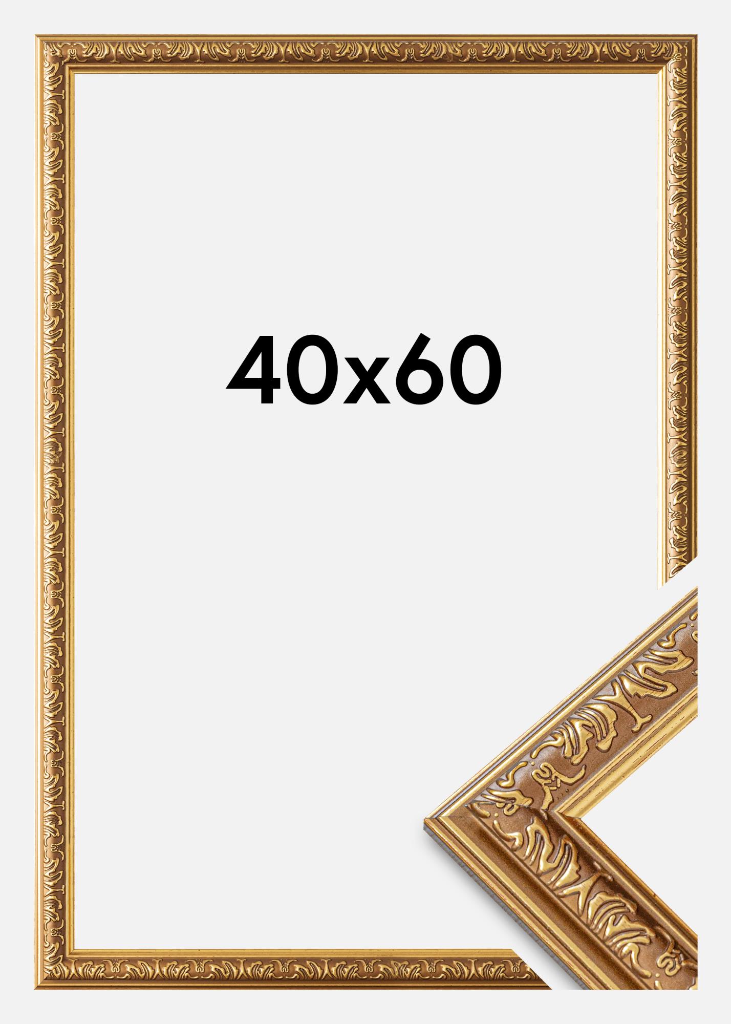 Ta złota ramka na zdjęcia to doskonałe połączenie klasycznej elegancji i nowoczesnej funkcjonalności. Dzięki swoim wymiarom 40x60 cm jest idealna do eksponowania ulubionych motywów, niezależnie czy jest to dzieło sztuki czy fotografia. Luksusowe złote wykończenie i dekoracyjne, ozdobione detale wzdłuż wewnętrznej krawędzi ramy nadają jej wyrafinowany charakter, który doskonale pasuje zarówno do klasycznych, jak i eleganckich stylów wnętrz.