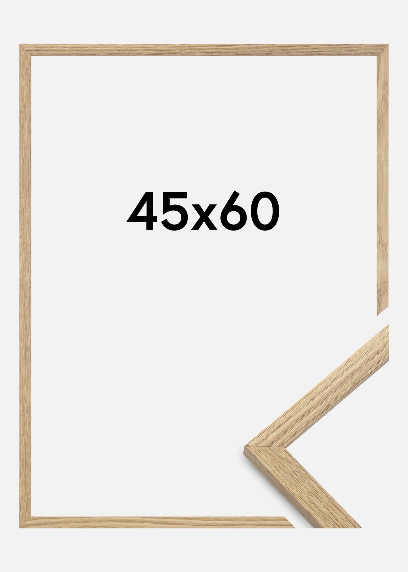 Rama jest wykonana z materiału MDF z foliowaną powierzchnią w kolorze dębu i ma cienki profil ramy o szerokości 14 mm. Jest dużo miejsca na uzupełnienie twoich obrazów luksusowym passe-partout, dzięki wewnętrznej głębokości ramy (falsz) wynoszącej 12 mm.