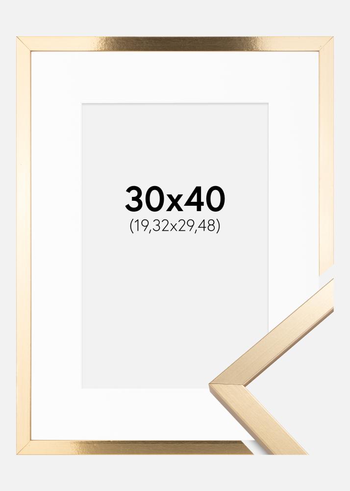 Rama ma błyszczące, złote wykończenie, które dodaje odrobinę luksusu każdemu pomieszczeniu. Jej szerokość 15 mm i głębokość zapewnia subtelny, ale wyróżniający się kształt oprawionego obrazu. Passepartout, dzięki czystemu białemu kolorowi, działa jako wizualny odpoczynek, który nie tylko wzmacnia kontrast i sprawia, że obraz staje się bardziej zwracający uwagę, ale również chroni dzieło sztuki, pozostawiając je oddzielone od szkła.