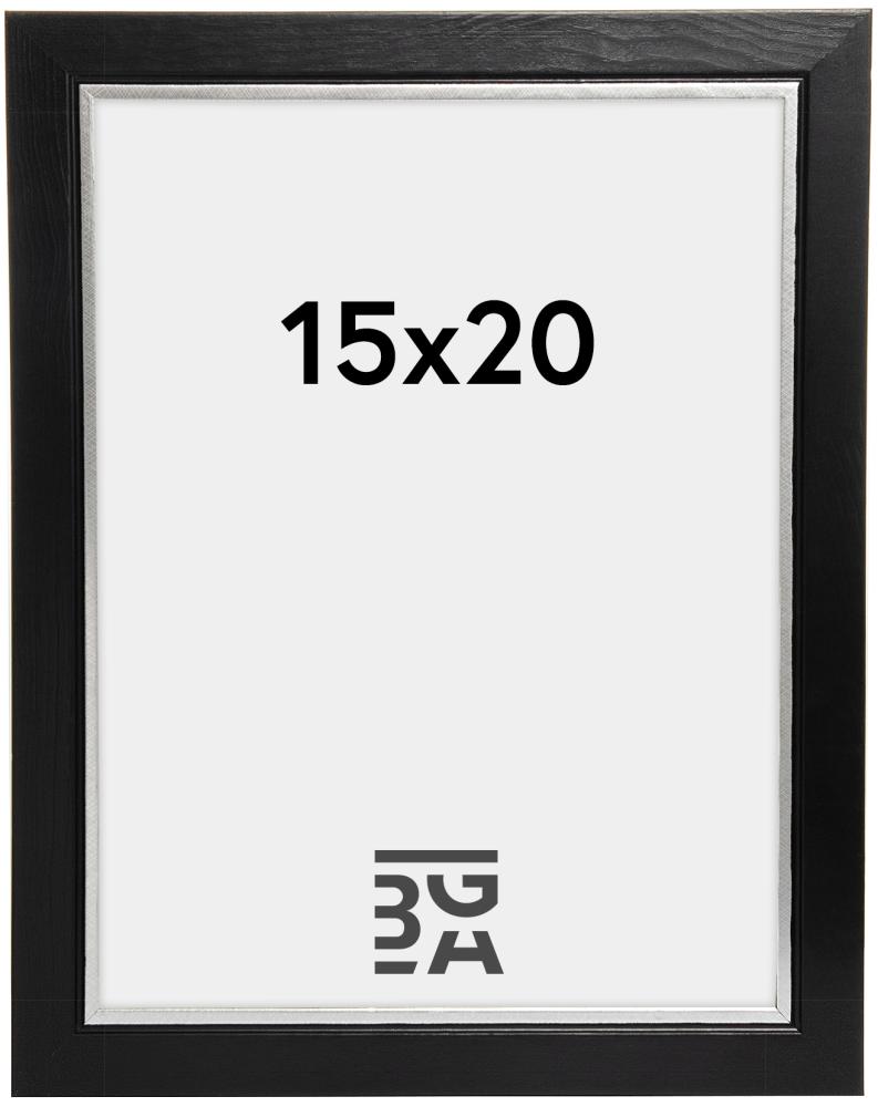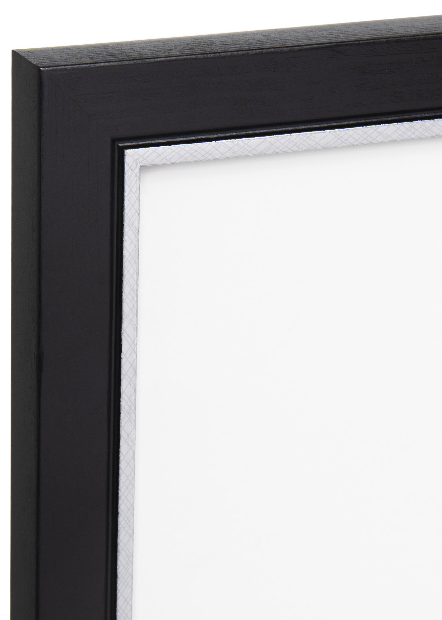 Ekskluzywna czarna ramka na zdjęcia z drewna z małym dodatkowym "Twistem" w postaci eleganckiej srebrnej krawędzi najbliżej motywu. Doskonały wybór, gdy szukasz ramki, która nada dodatkowy wymiar motywowi. Idealna do umieszczenia na półce na obrazy dla efektownego kolażu.