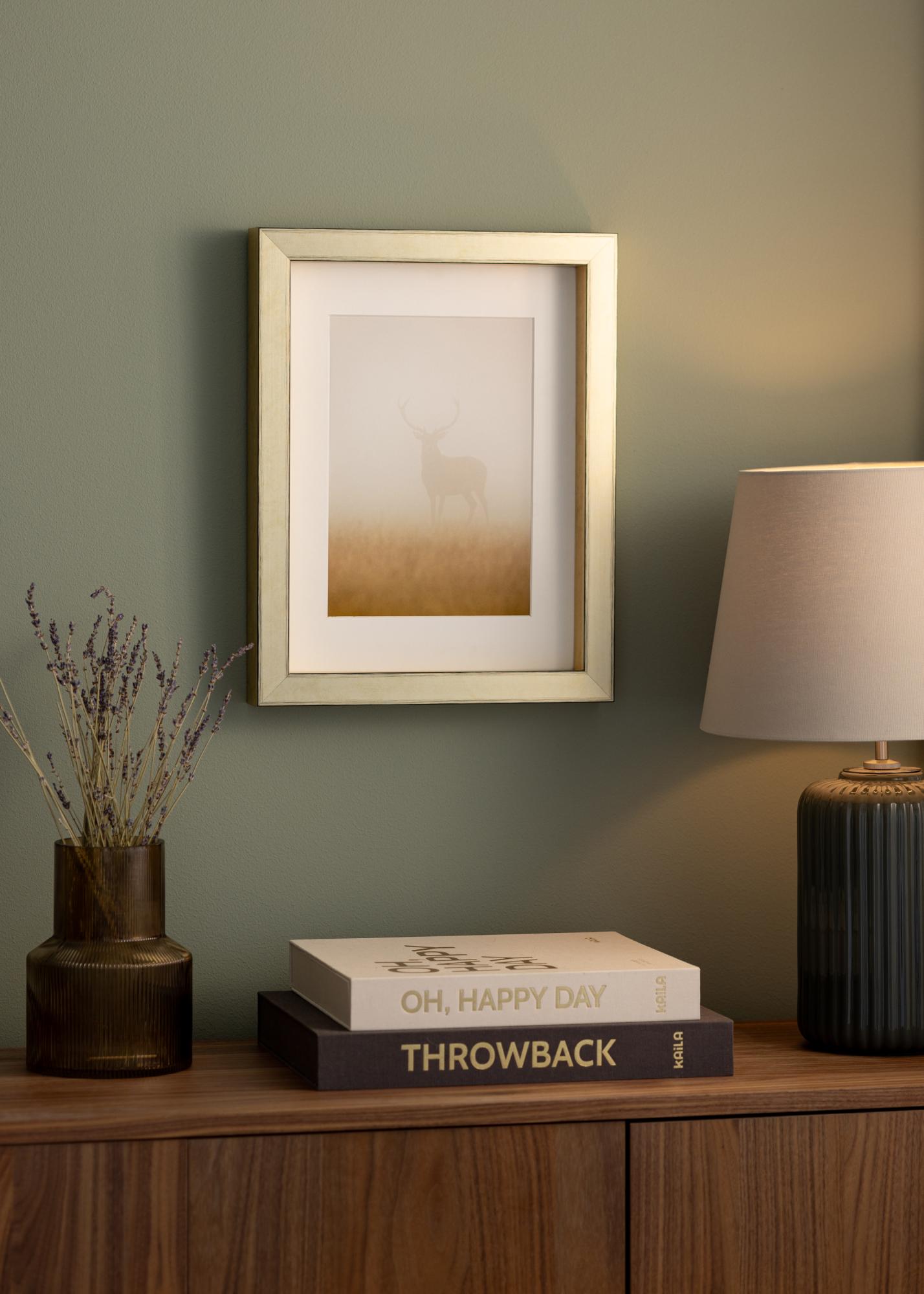Dzięki Ramie Tyr Złoty masz możliwość dostosowania sposobu prezentacji twojego motywu. Możesz zdecydować się na umieszczenie go na końcu ramki, aby stworzyć lewitujący efekt, lub bliżej przodu dla bardziej tradycyjnej oprawy. Ta elastyczność ułatwia dopasowanie ramy do twojego dzieła sztuki i stylu wnętrza.