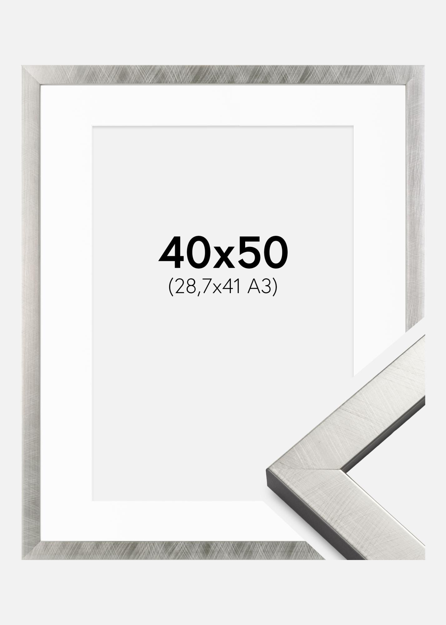 Rama Uppsala Srebrny 40x50 cm - Passe-patrout Biały 29,7x42 cm (A3)