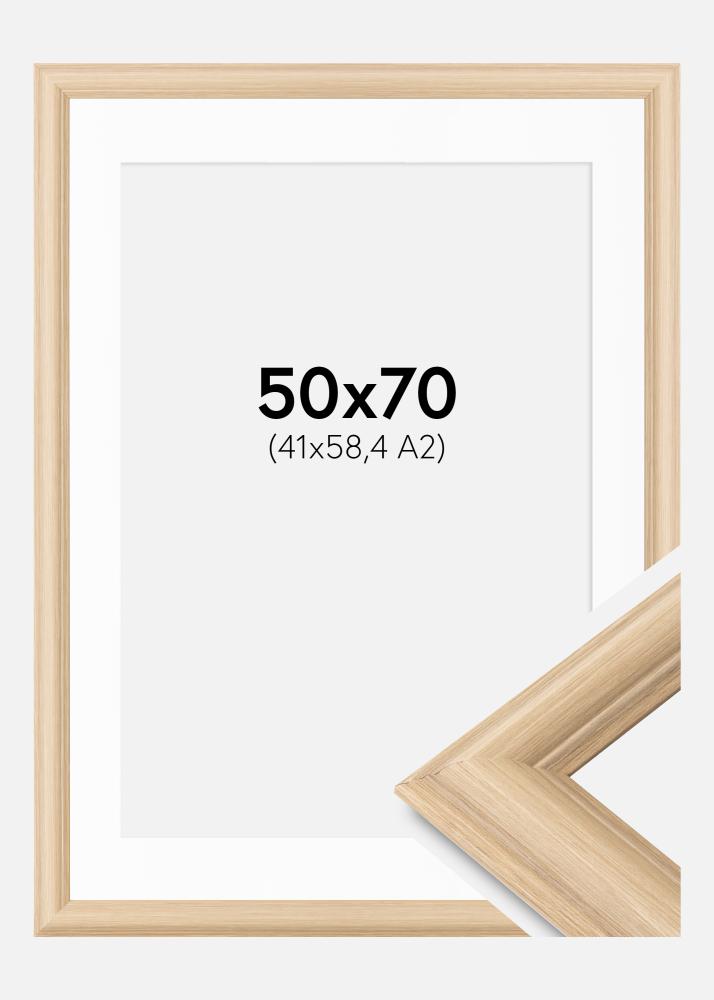 Odkryj piękno swoich dzieł sztuki lub ulubionych fotografii za pomocą eleganckiej ramy, która uzupełniona jest białym passe-partout. Ta rama nadaje twojemu obrazowi w formacie A2 (42x59,4 cm) należną mu uwagę, otoczony ciepłą drewnianą krawędzią o szerokości 31 mm i głębokości 17 mm. Białe passe-partout wyodrębnia i podkreśla motyw w wyrafinowany sposób.