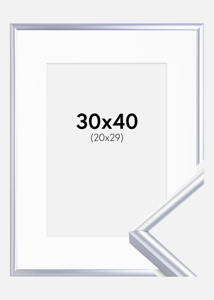 Rama Victoria Srebrny 30x40 cm - Passe-patrout Biały 21x30 cm