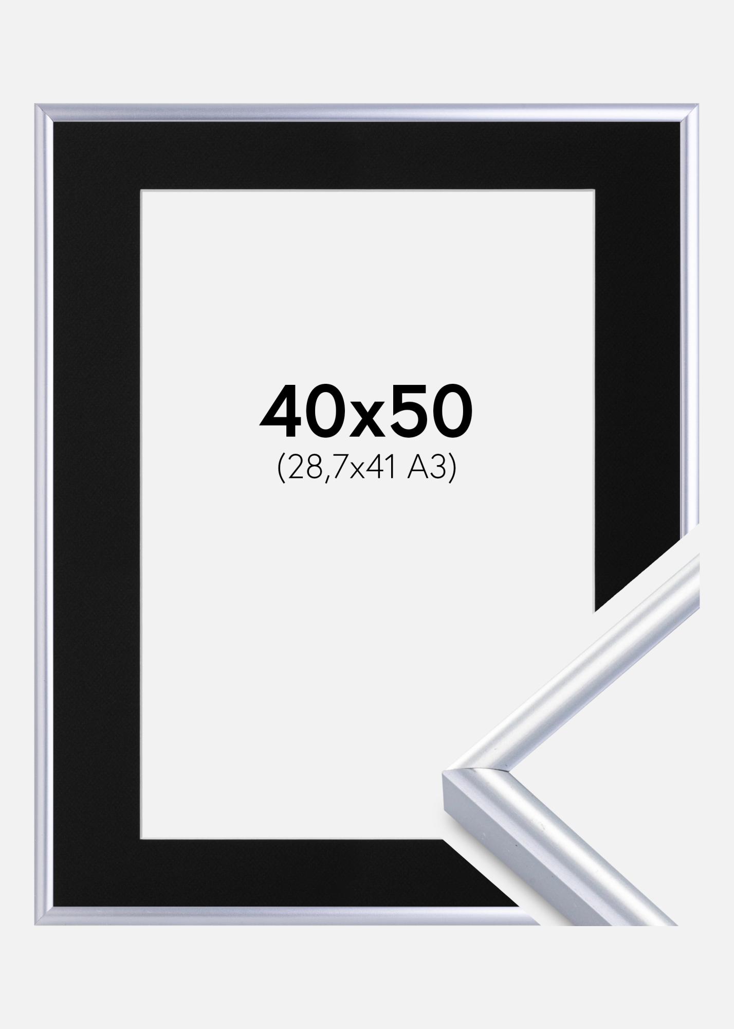 Rama Victoria Srebrny 40x50 cm - Passe-patrout Czarny 29,7x42 cm (A3)