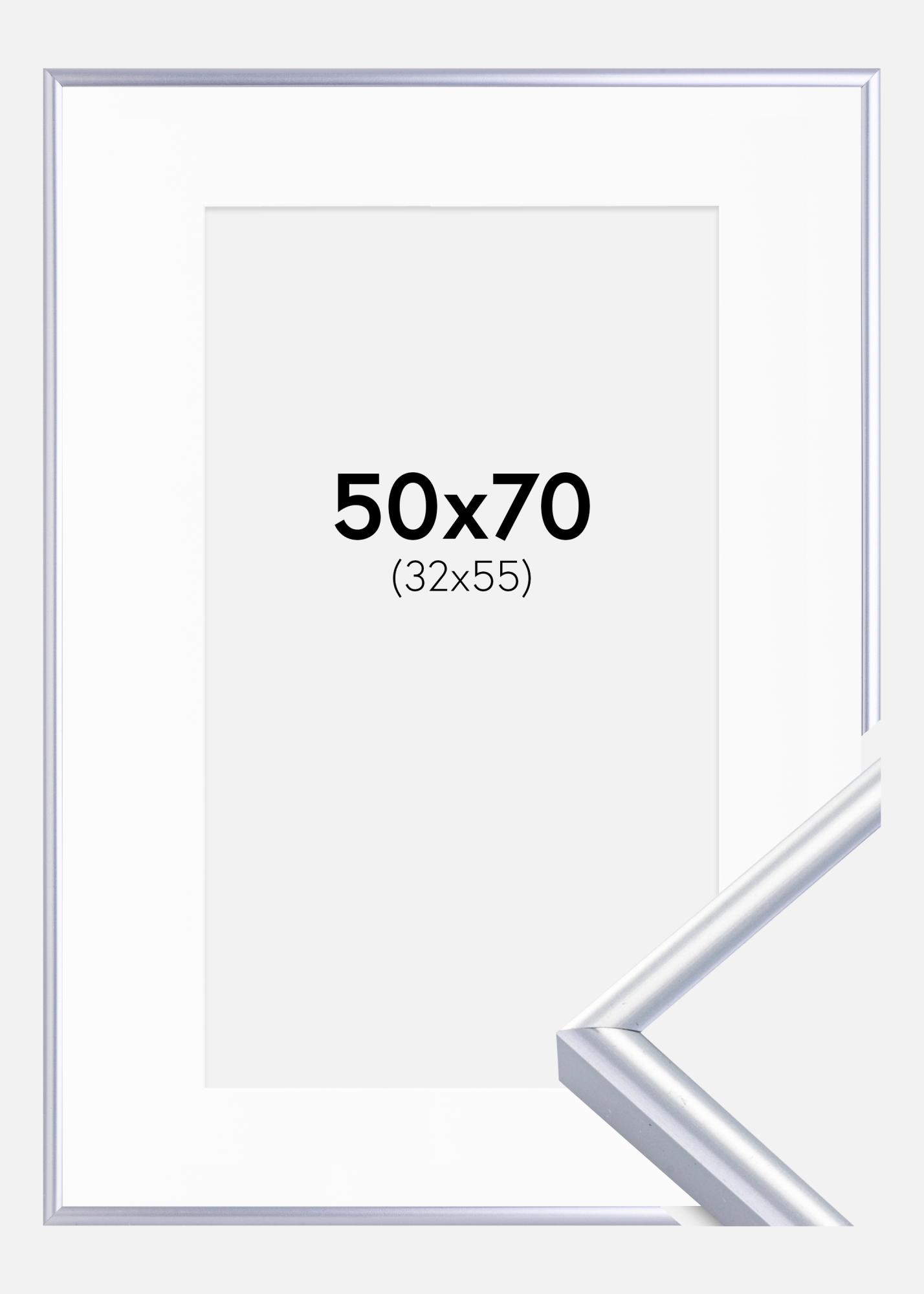 Rama Victoria Srebrny 50x70 cm - Passe-patrout Biały 33x56 cm