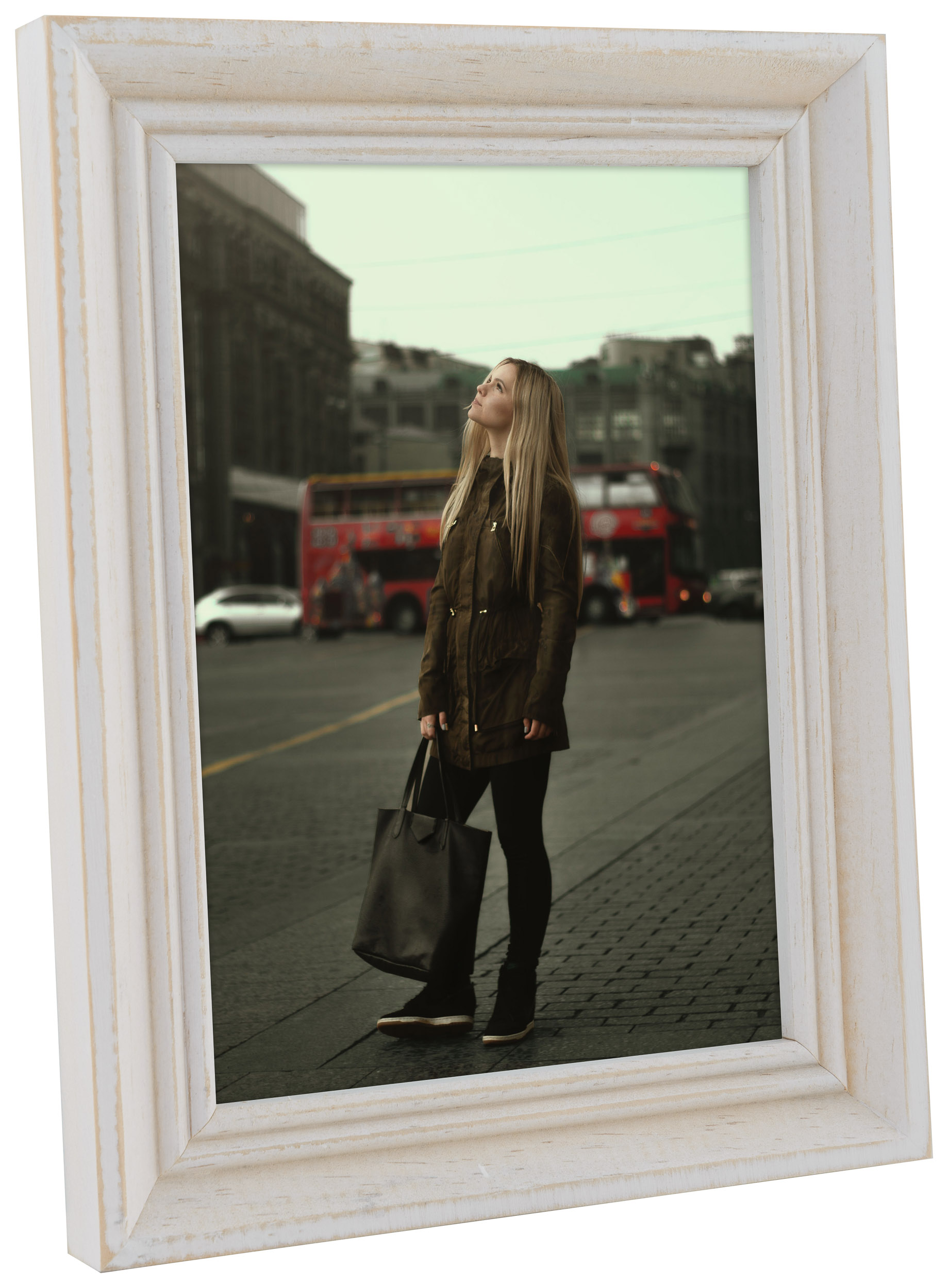 Lubisz gadżety z charakterem? Oto pięknie postarzona ramka na obrazki, która nadaje Twoim zdjęciom styl vintage. Rama jest wykonana z drewna z klasycznym profilowaniem. Jest pomalowana na biało i poddana obróbce, aby wyglądała na starą. Idealna ramka do wykorzystania, gdy chcesz na przykład podkreślić stare zdjęcie lub oprawić dekoracje, które sam stworzyłeś.