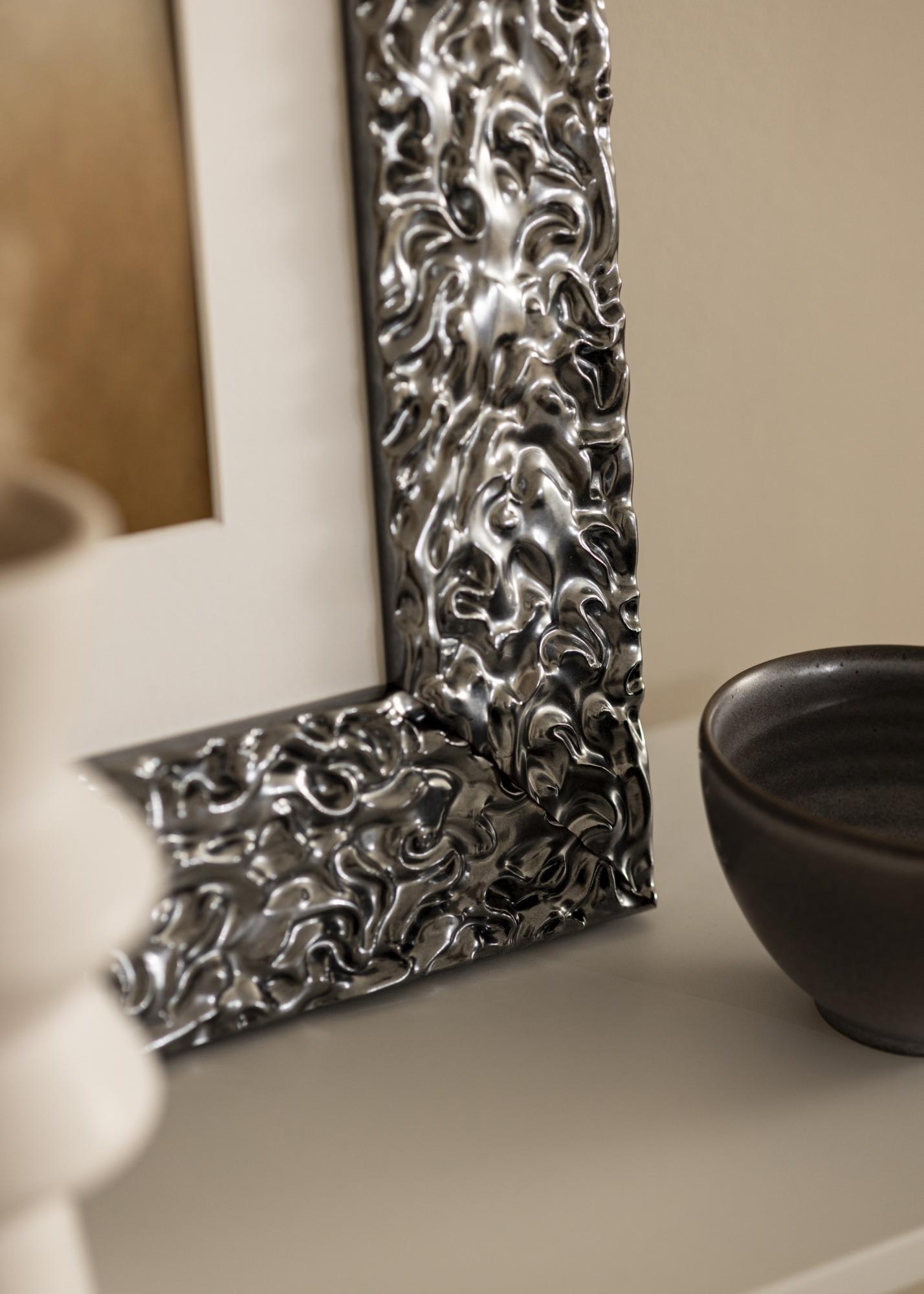 Ta rama na obrazy ma szeroki listek ramki o szerokości 81 mm i głębokość 23 mm, co nadaje jej solidną i imponującą obecność na ścianie. Wykonana z drewna sosnowego, łączy trwałość z estetyką, co czyni ją doskonałym wyborem zarówno do nowoczesnych, jak i klasycznych aranżacji wnętrz. Srebrny kolor dodaje luksusowego charakteru i łatwo można go dopasować do różnych kolorów w Twoim domu.