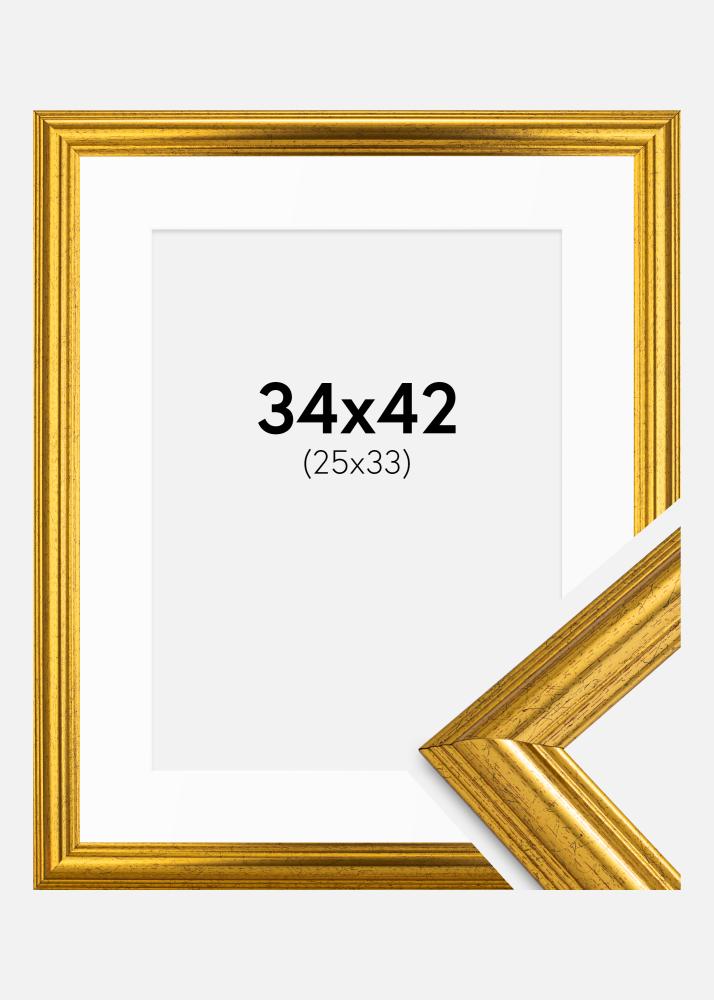 Rama ma szerokość 31 mm i głębokość 17 mm, co daje solidne i stabilne odczucie. Błyszcząca powierzchnia w kolorze złotym tworzy luksusowy akcent, który doskonale pasuje zarówno do nowoczesnych, jak i klasycznych wnętrz. Przy zewnętrznych wymiarach 39x47 cm ta ramka stanie się przyciągającym wzrok detalem na ścianie.