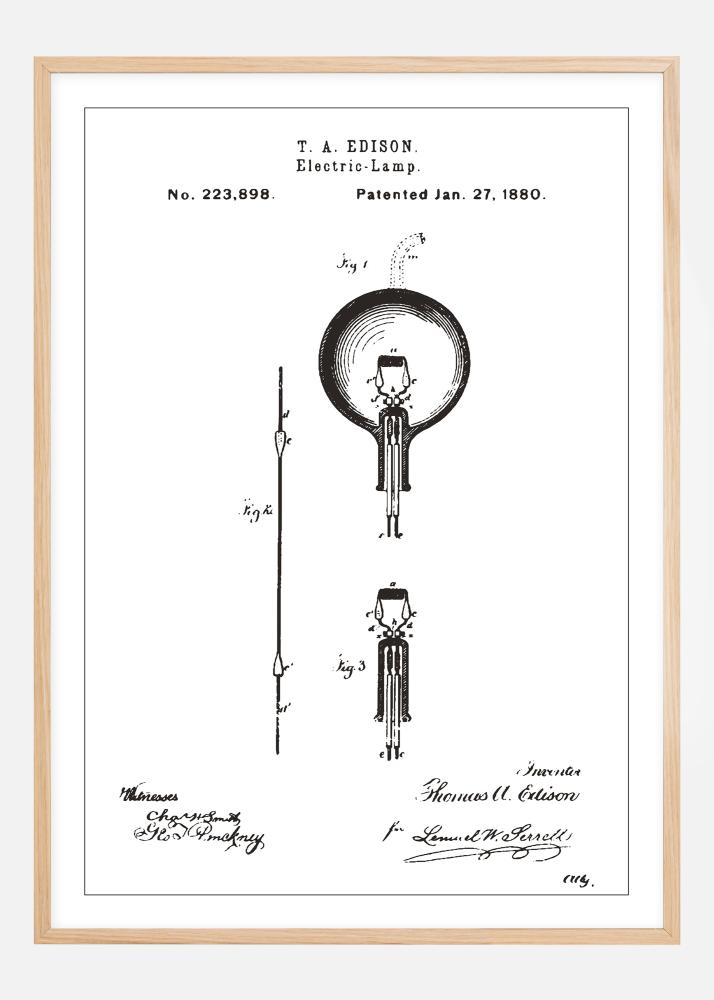 Ten ponadczasowy plakat patentowy przedstawia przełomową elektryczną lampę Thomasa A. Edisona, która rozświetla nasze życie od momentu uzyskania patentu numer 223,898 dnia 27 stycznia 1880 roku. Ten elegancki i edukacyjny plakat jest hołdem dla jednego z największych wynalazków wszech czasów i oferuje unikalny wgląd w innowacje technologiczne. Szczegóły rysunku ujawniają staranny proces, który towarzyszył wynalezieniu żarówki, produktu, który odgrywa centralną rolę w naszym codziennym życiu. Ten plakat to doskonały rozpoczynacz rozmów i źródło inspiracji, idealny dla każdego, kto ceni sobie historyczną technologię i design.