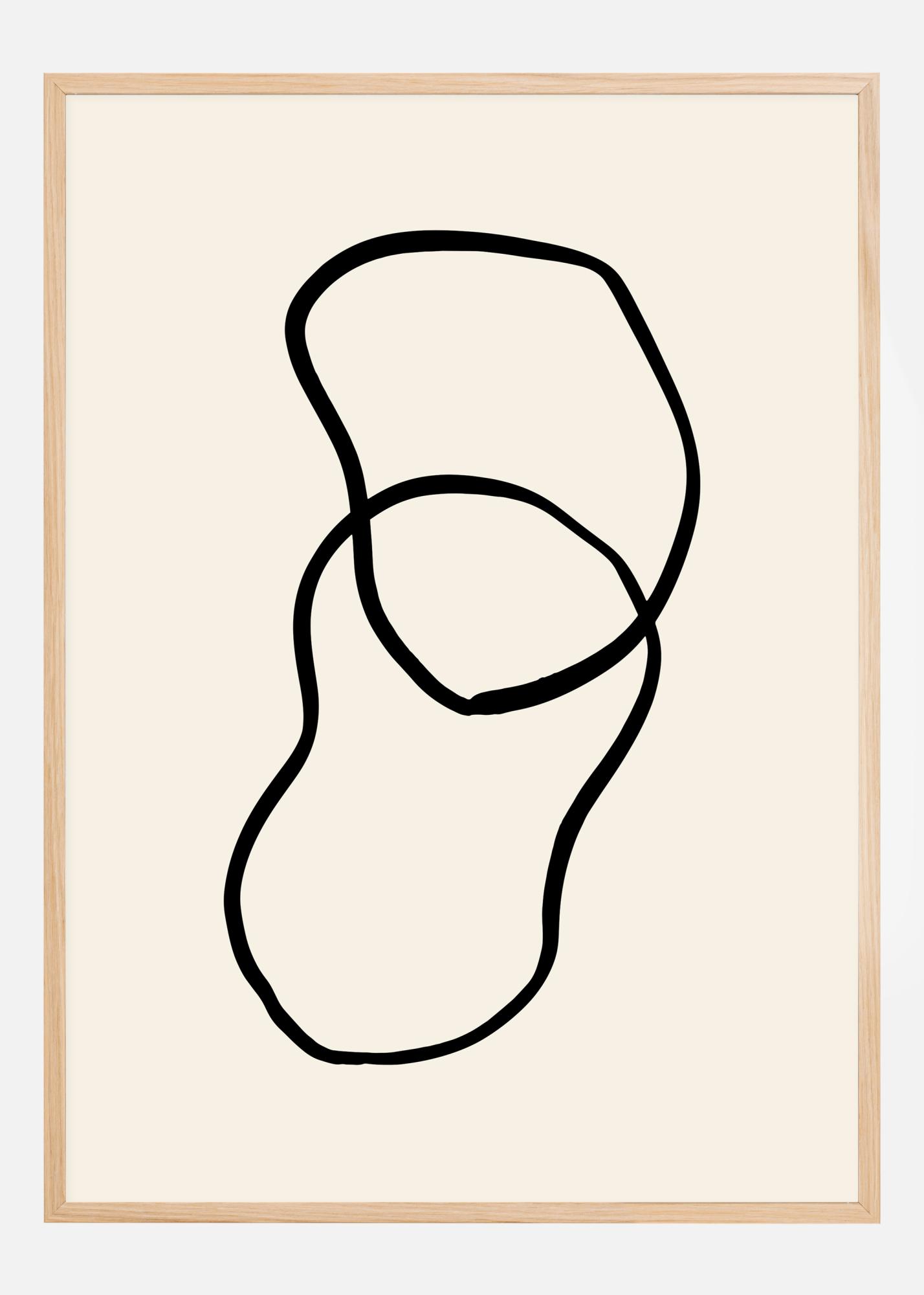 Abstrakcyjny plakat z dwoma formami, które są splecione. Dwie masywne formy są rysowane mocnymi czarnymi liniami i przecinają się, tworząc trzecią formę. Powieś ten zabawny czarno-biały obraz na kolorowej ścianie, aby uzyskać nowoczesny artystyczny wygląd w domu.