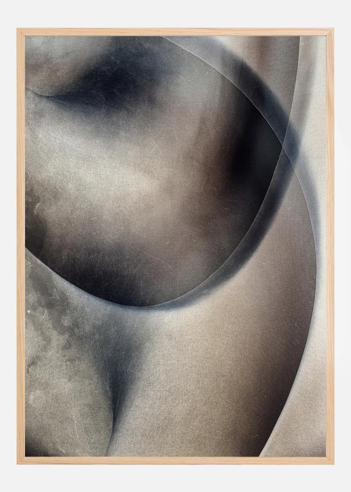 Plakat z żywym rysunkiem przedstawiającym zbliżenie bioder i torsu kobiety. Ten wspaniały abstrakcyjny obraz ma delikatne akcenty niebieskiego i fioletowego, aby stworzyć linie ciała. Dodatkowe silne nakładające się formy sprawiają, że obszary się wyróżniają. Ciesz się tym abstrakcyjnym obrazem ciała, gdy wisi w domu.