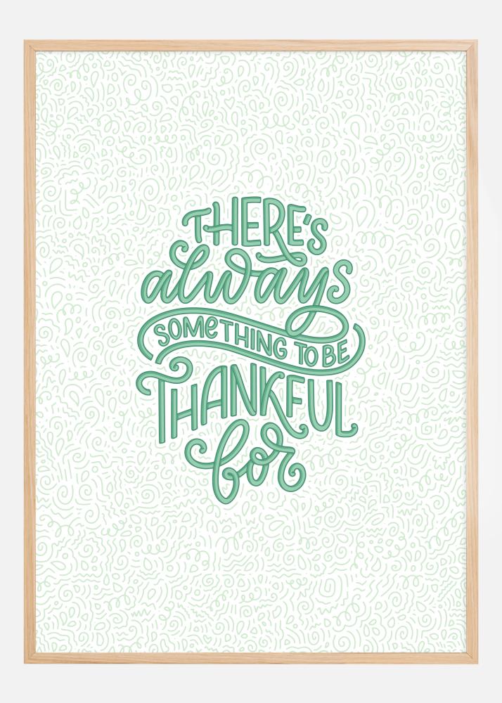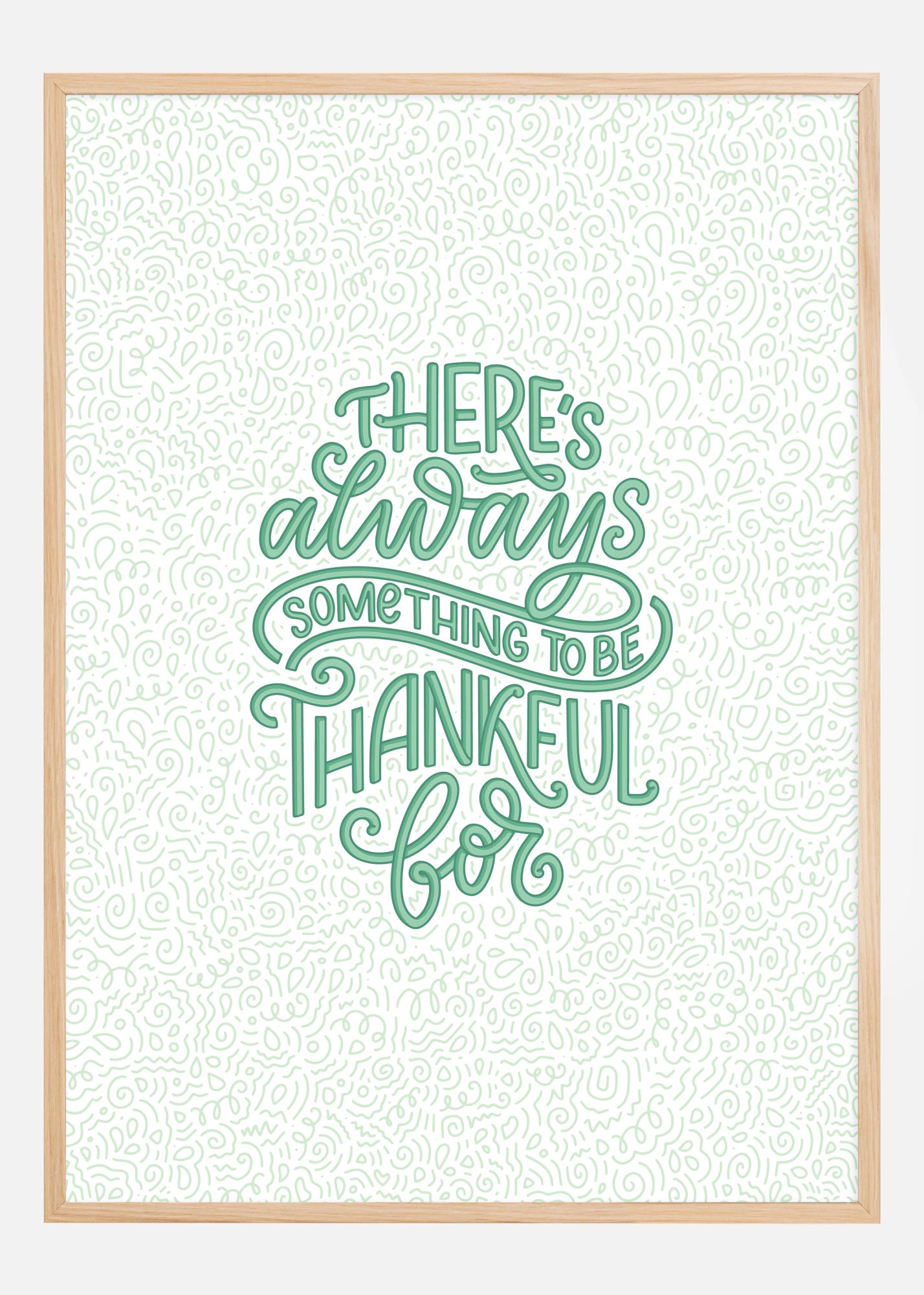 Ten inspirujący plakat jest wezwaniem do optymizmu i wdzięczności, doskonałym do rozprzestrzeniania pozytywnych wibracji w Twoim domu lub miejscu pracy. Z żywym zielonym tekstem, który brzmi "There's always something to be thankful for" na szczegółowym białym tle pełnym złożonych linii i wzorów, zachęca do pozytywnego spojrzenia na życie i refleksji.