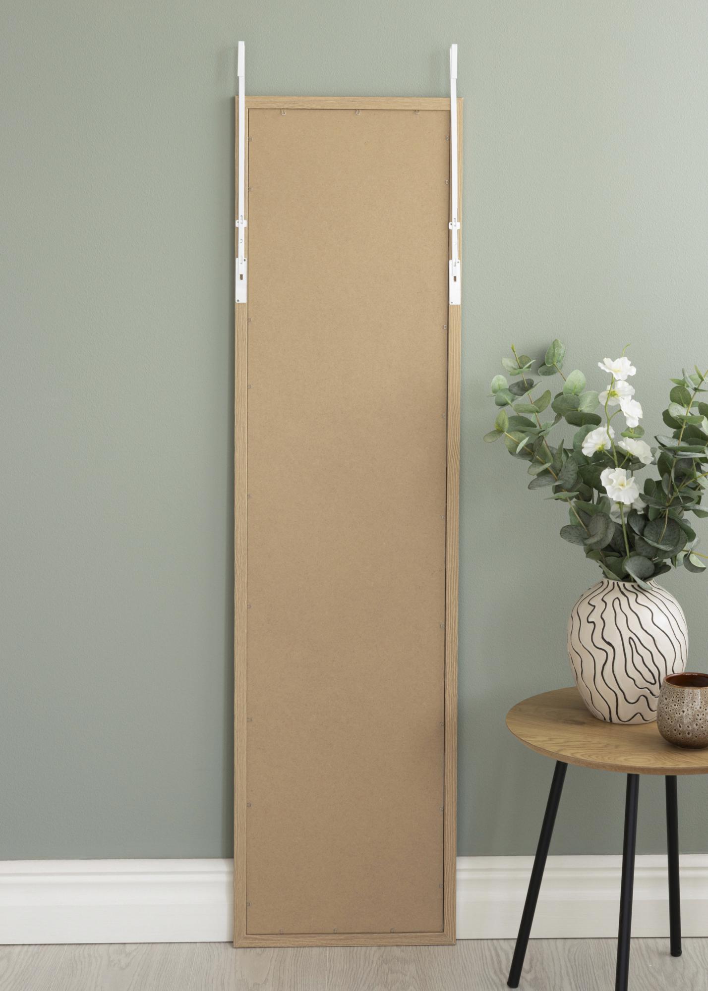To Lustro na drzwi ma smukłą i nowoczesną drewnianą ramę z Dąb, która wprowadza do wnętrza ciepło i naturalny charakter. Matowa powierzchnia sprawia, że Lustro prezentuje się dyskretnie, a jednocześnie dodaje strukturę i wyrazistość pomieszczeniu.
