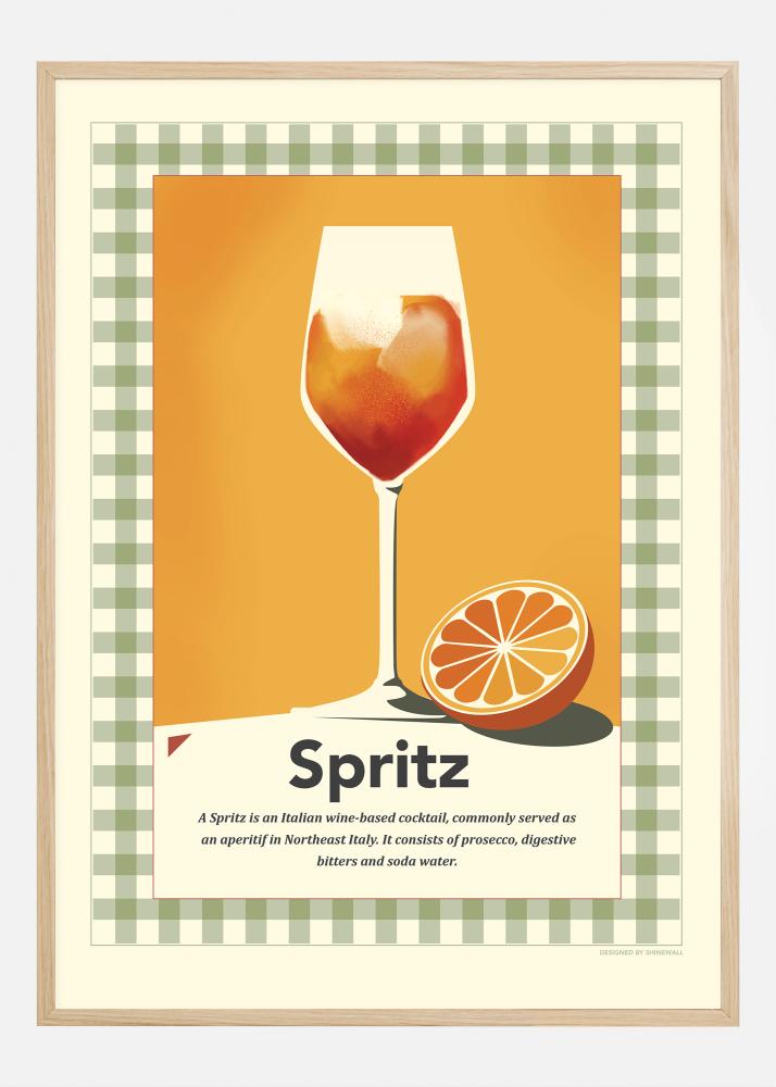 Dla wszystkich, którzy tęsknią za tym wakacyjnym uczuciem, przedstawiamy plakat, który natychmiast przeniesie cię na słoneczne tarasy północnych Włoch. Nasz retro-inspirowany plakat Spritz oddaje hołd klasycznemu apéritifowi z ilustracją promieniującą ciepłem i radością. Pomarańczowe odcienie szkła na tle odważnej, zielonej kraty tworzą wrażenie zarówno vintage, jak i ponadczasowe.