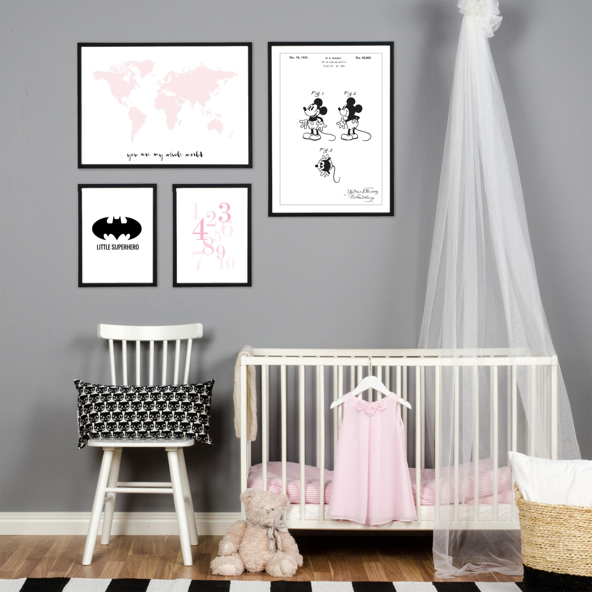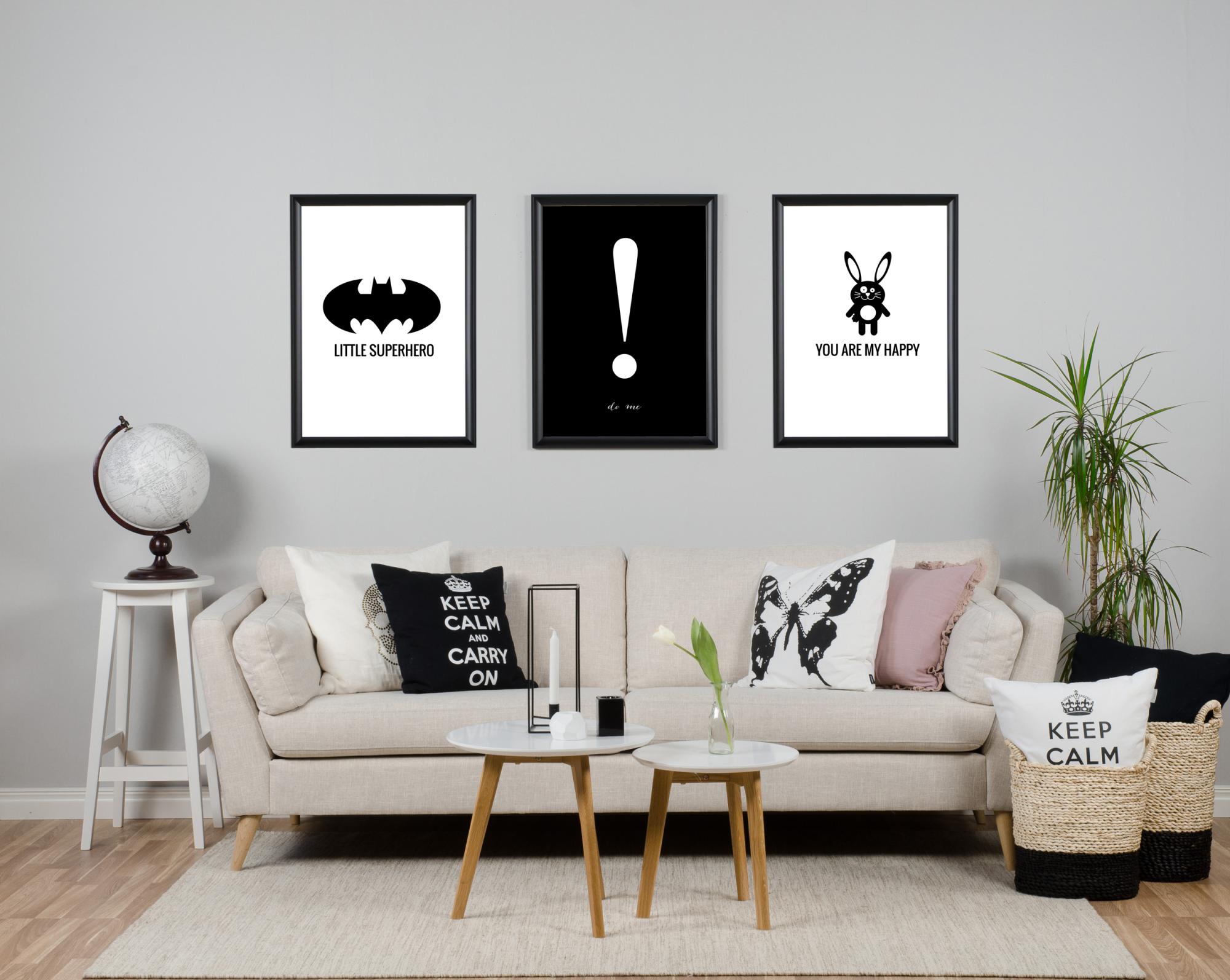 Nanananananananana Batman! Plakat superbohatera dla wszystkich małych nietoperzy do dekoracji pokoju. Czarnobiała ilustracja graficzna, z elegancką czcionką, pasuje do wszystkich stylów wnętrz, ale najlepiej prezentuje się oczywiście w wilgotnych jaskiniach. Połącz plakat z jednym z innych wydruków w tym samym stylu, aby stworzyć serię - Dino Favorite, Elefant Dream, Piesek Little, Superbohater lub Królik Happy.