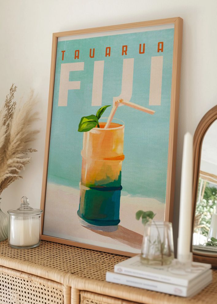 Tavarua Fiji Cocktail Poster Travel Art Plakat