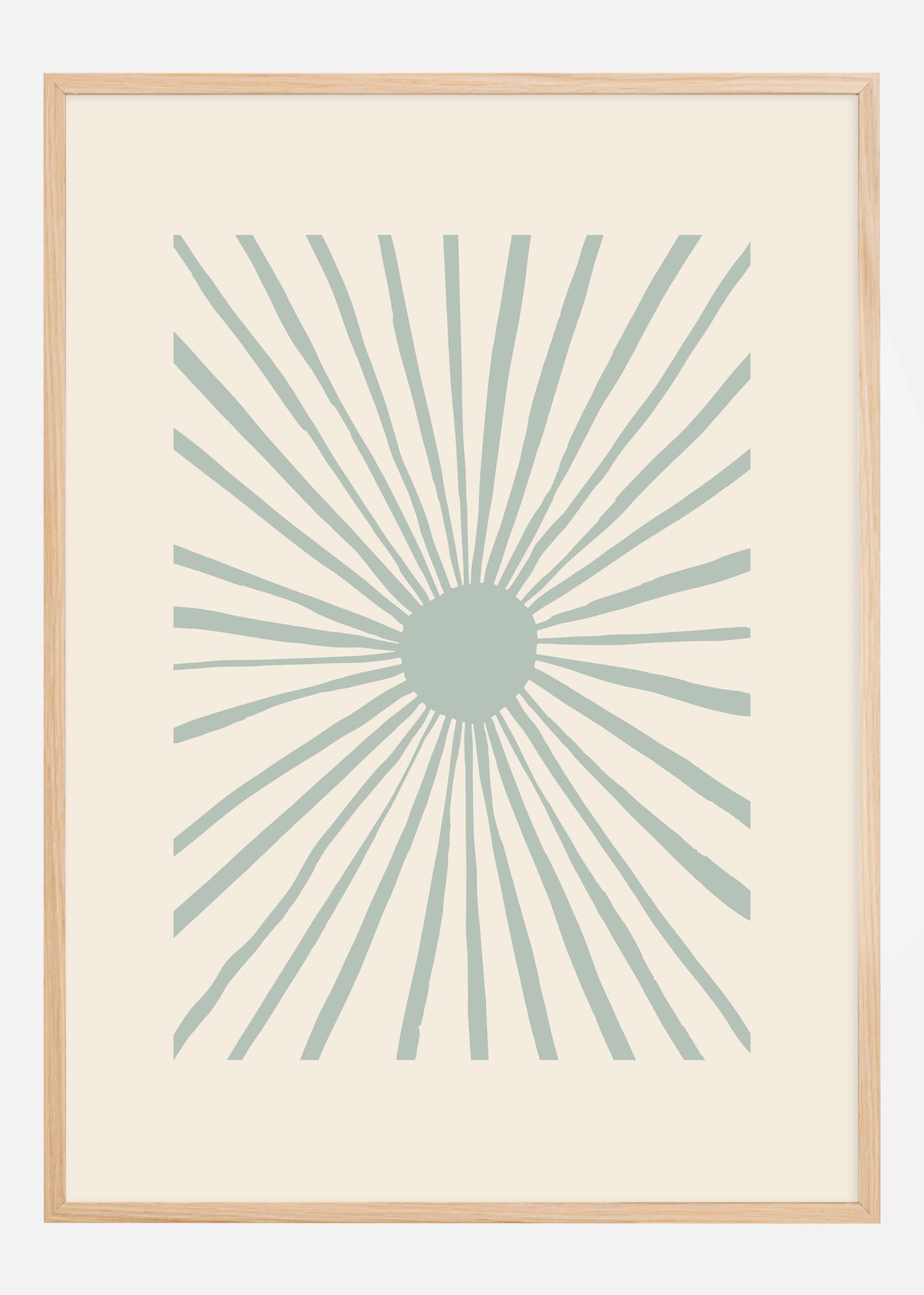 Ozdób swoje wnętrze tym eleganckim i współczesnym plakatem, który przedstawia abstrakcyjną interpretację słońca. Motyw charakteryzuje się serią miękkich szarych promieni wychodzących z centralnego, dyskretnego szarego koła, tworząc wyrafinowane i relaksujące wrażenia wizualne. Szary zakres kolorów harmonijnie przechodzi w ciepłe kremowe tło, co przyczynia się do poczucia równowagi i spokoju w pomieszczeniu.