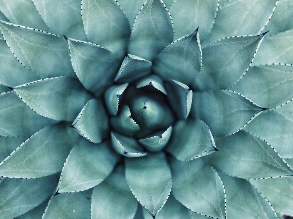 Plakat graficzny z pięknym zbliżeniem na zielono-niebieski kaktus. Wyraźny kształt liści z ciemnymi kolcami i stonowanym turkusowym kolorem tworzy atrakcyjny wzór, który dobrze komponuje się we wszystkich typach wnętrz. Z ciemną ramą obrazu fotografia dobrze prezentuje się samodzielnie na ścianie, ale może być również wykorzystana jako część kolażu z roślinami.