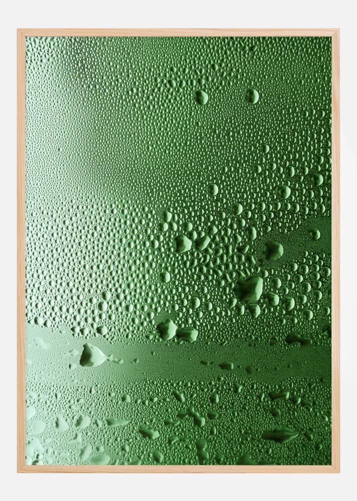 Odkryj na nowo prostotę piękna elementów natury dzięki naszej plakatowej odsłonie, która podkreśla świeżość kropli wody na błyszczącej powierzchni. To dzieło sztuki uchwyciło moment, gdy krople spokojnie spoczywają na żywej zielonej powierzchni, każda z nich odbijając światło, dodając głębi i tekstury do prostej kompozycji. Ta grafika jest subtelnym przypomnieniem o czystych potrzebach życiowych i spokojnej obecności natury.