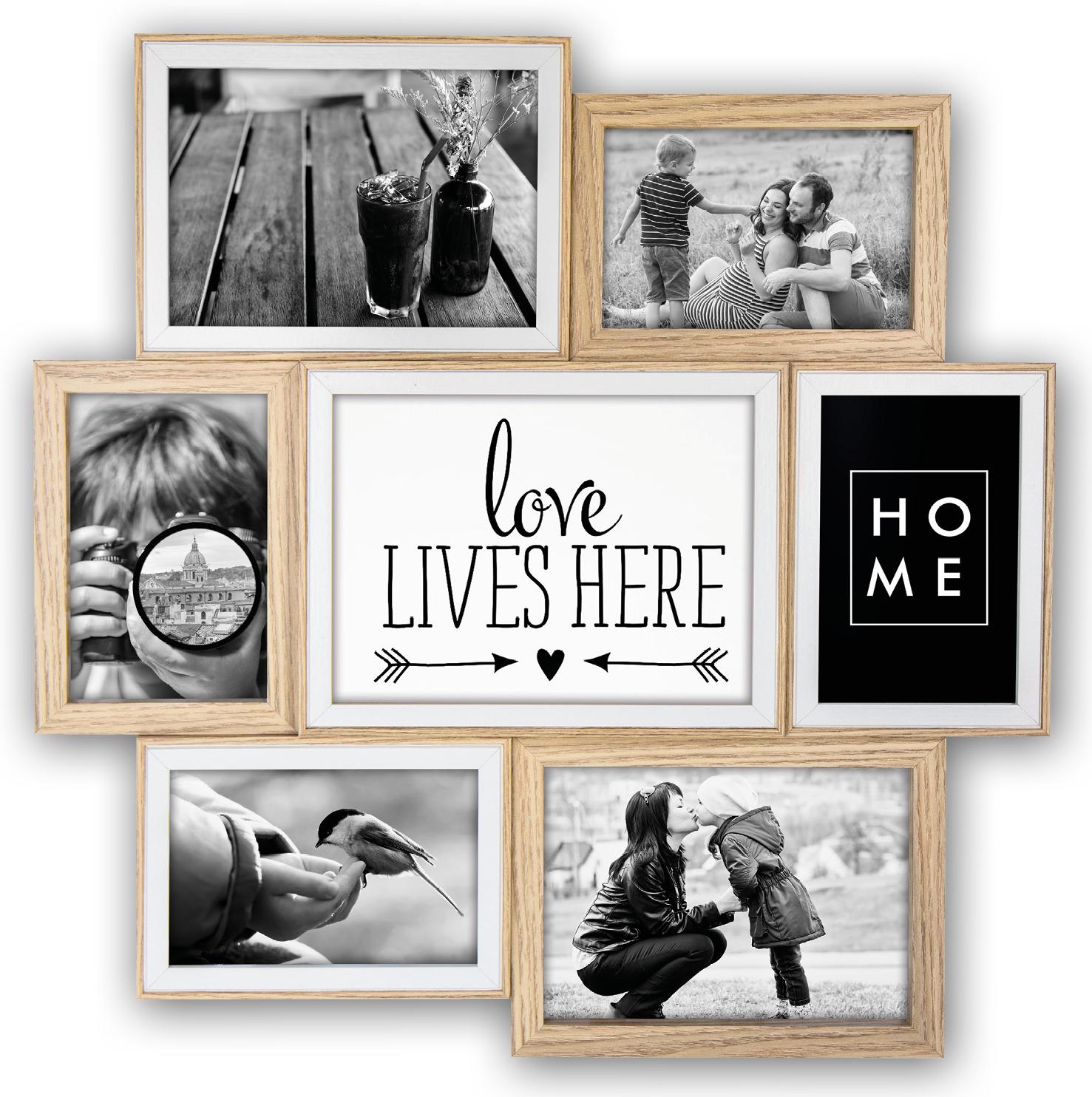 Sku:Stylowa ramka kolażowa z drewna z miejscem na 7 zdjęć w różnych rozmiarach.