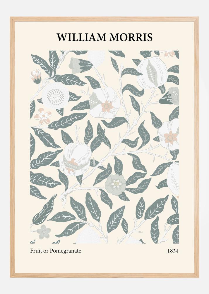 Ten piękny plakat Williama Morrisa zatytułowany "Fruit or Pomegranate" to uczta dla oka, bogata w szczegóły i pełna motywów inspirowanych naturą. Szczegółowy wzór składa się z granatów i liści, które są starannie rozmieszczone, tworząc organiczną i płynną kompozycję. Paleta kolorów jest zarówno uspokajająca, jak i odświeżająca, z odcieniami zieleni i beżu, uzupełnionymi białawymi owocami i kwiatami. To plakat, który zasługuje na wyeksponowane miejsce w każdym pomieszczeniu, oferując odrobinę cichej elegancji natury do wnętrz.