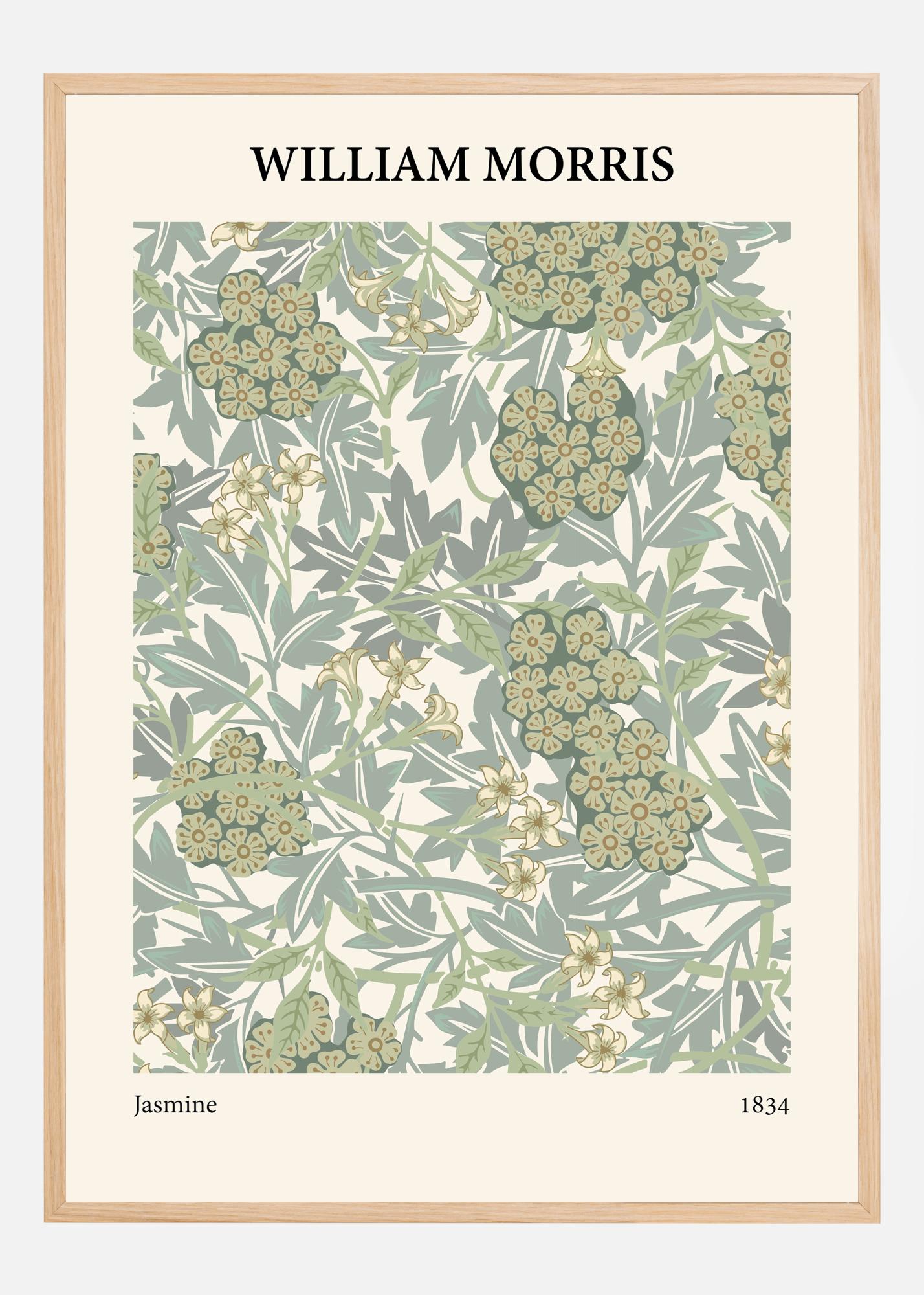 "Jasmine" plakat Williama Morrisa to pokaz zarówno delikatności, jak i dynamiki flory natury. Ten wydruk jest pełen życia dzięki swoim płynnym wzorom kwiatów jaśminu i bujnych liści. Wzór skomponowany jest z wyrafinowanej palety kolorów w odcieniach zieleni, beżu i żółtego, które łączą się, aby stworzyć wrażenie gęstego i zapraszającego ogrodu, gotowego do zbadania i podziwiania.