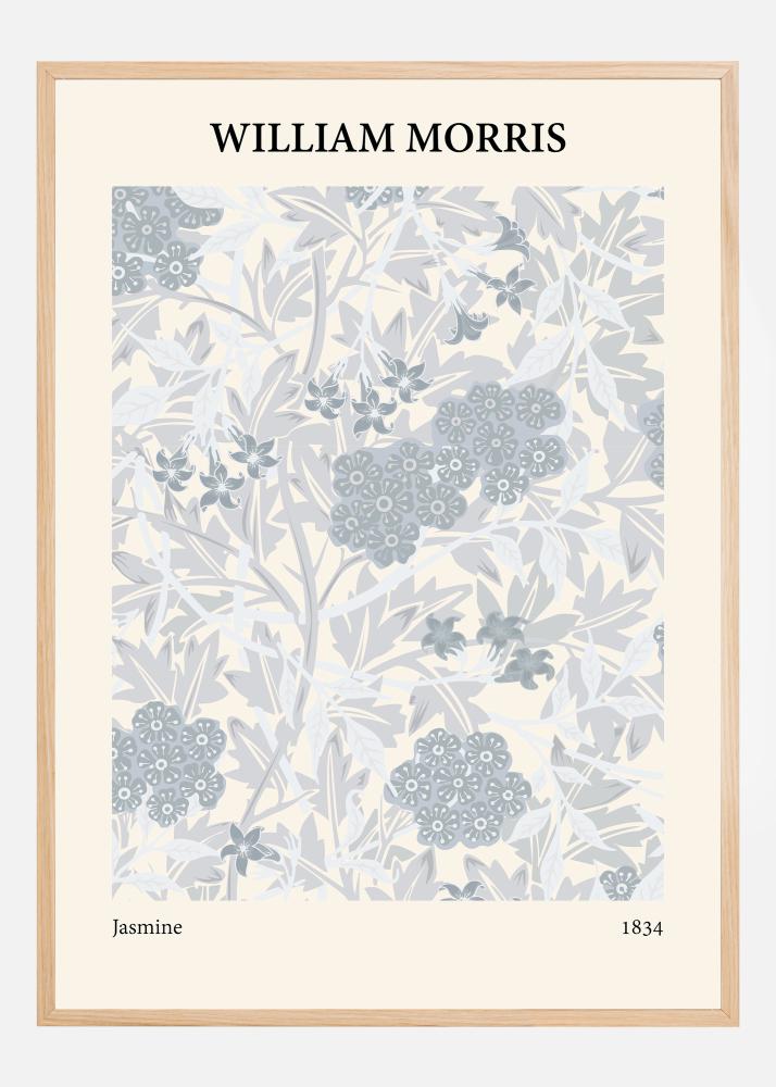 Ten elegancki i kojący plakat autorstwa Williama Morrisa, zatytułowany "Jasmine", emanuje poczuciem spokoju i czystości. Wzór jest barwną interpretacją kwitnącego ogrodu, z kwiatami jaśminu i liśćmi w odcieniach bladego niebieskiego i szarego, które są pięknie umieszczone na czystym i kojącym kremowym tle. Ten druk jest hołdem dla miłości Morrisa do natury i jego umiejętności uchwycenia jej piękna w swoich wzorach.