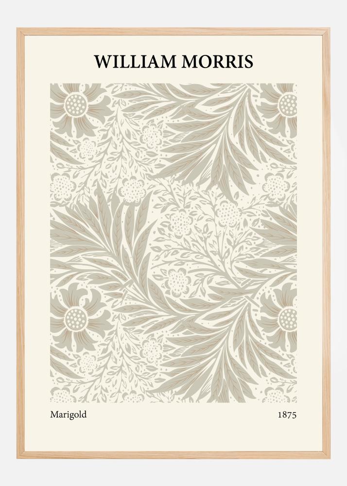 Ten plakat przedstawia ponadczasowy wzór "Nagietek" autorstwa Williama Morrisa z 1875 roku. Jest to przyciągające wzrok przedstawienie umiejętnego wykorzystania formy i inspirowanych naturą elementów przez Morrisa, które splatają się w harmonijny wzór. Projekt plakatu jest doskonałym przykładem filozofii ruchu Arts and Crafts, gdzie piękno rzemiosła i naturalnego świata wywyższa się do formy sztuki.