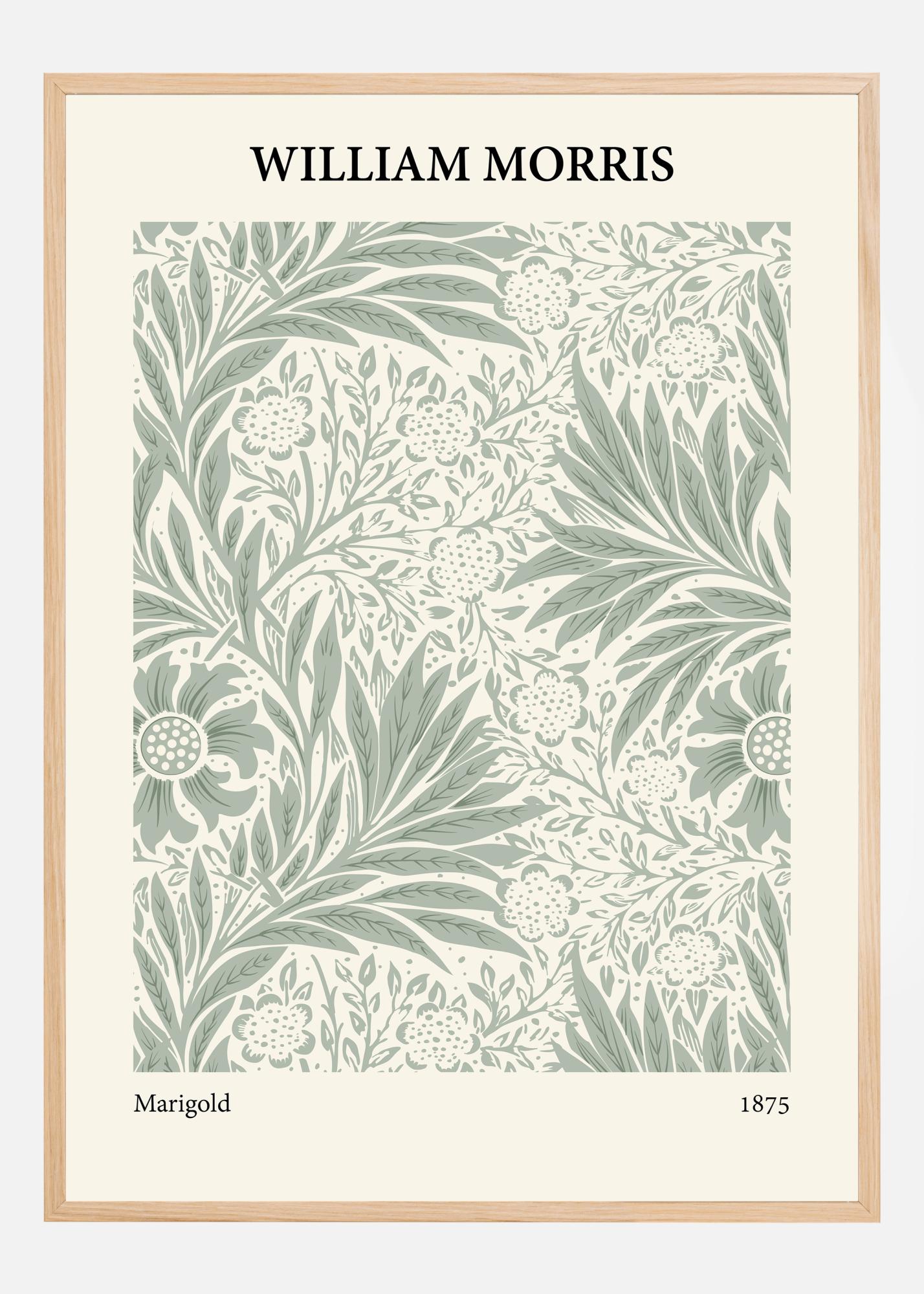 Ten wyjątkowy plakat przedstawia projekt Williama Morrisa "Nagietek" z 1875 roku, ukazujący bogactwo motywów inspirowanych naturą, wszystkie wykonane z niezrównaną wprawą i dbałością o szczegóły. Żywa, ale subtelna zielona paleta kolorów jest typowa dla projektów Morrisa i ożywia każdy liść i płatek, czyniąc dzieło sztuki ponadczasowym klasykiem aranżacji wnętrz.