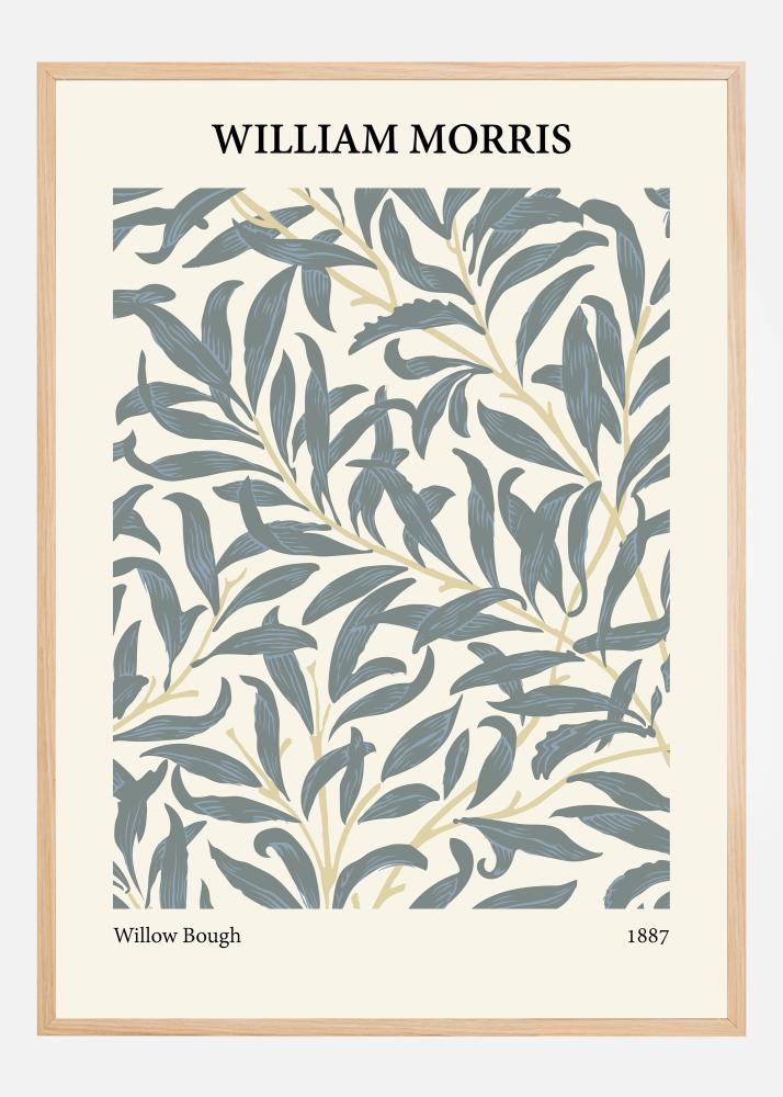 Ten artystyczny plakat oddaje hołd Williamowi Morrisowi i jego ponadczasowemu wzorowi "Willow Bough" z 1887 roku. Żywa i dynamiczna kompozycja liści wierzby na kremowym tle jest klasycznym przykładem miłości Morrisa do natury oraz jego umiejętności tworzenia szczegółowych wzorów tekstylnych. Spokojna i chłodna paleta kolorów w odcieniach niebieskiego i zielonego tworzy poczucie spokoju i ciszy, co sprawia, że ten projekt jest uwielbianą klasyką.