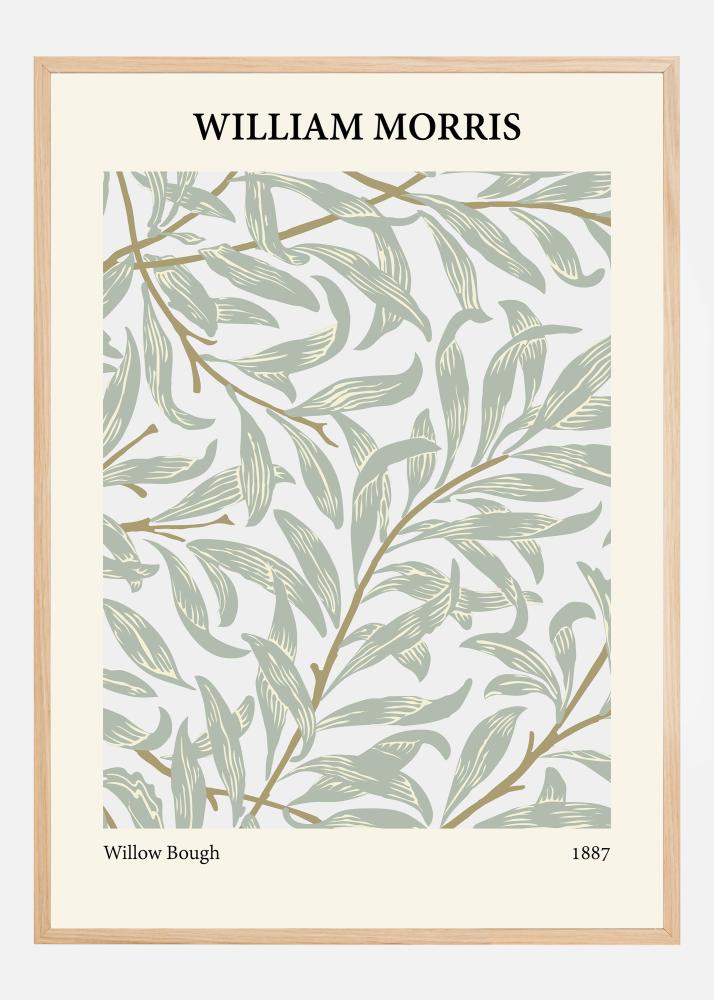Ten jasny i świeży plakat przedstawia projekt Williama Morrisa "Willow Bough" z 1887 roku, charakteryzujący się wijącymi się gałęziami i liśćmi wierzby w płynny i realistyczny wzór. Kojąca zielona kolorystyka podkreśla szczegółowe liście i daje poczucie spokojnego ogrodu oraz więzi z naturą, co było centralne w twórczości Morrisa i w ruchu Arts and Crafts jako całości.