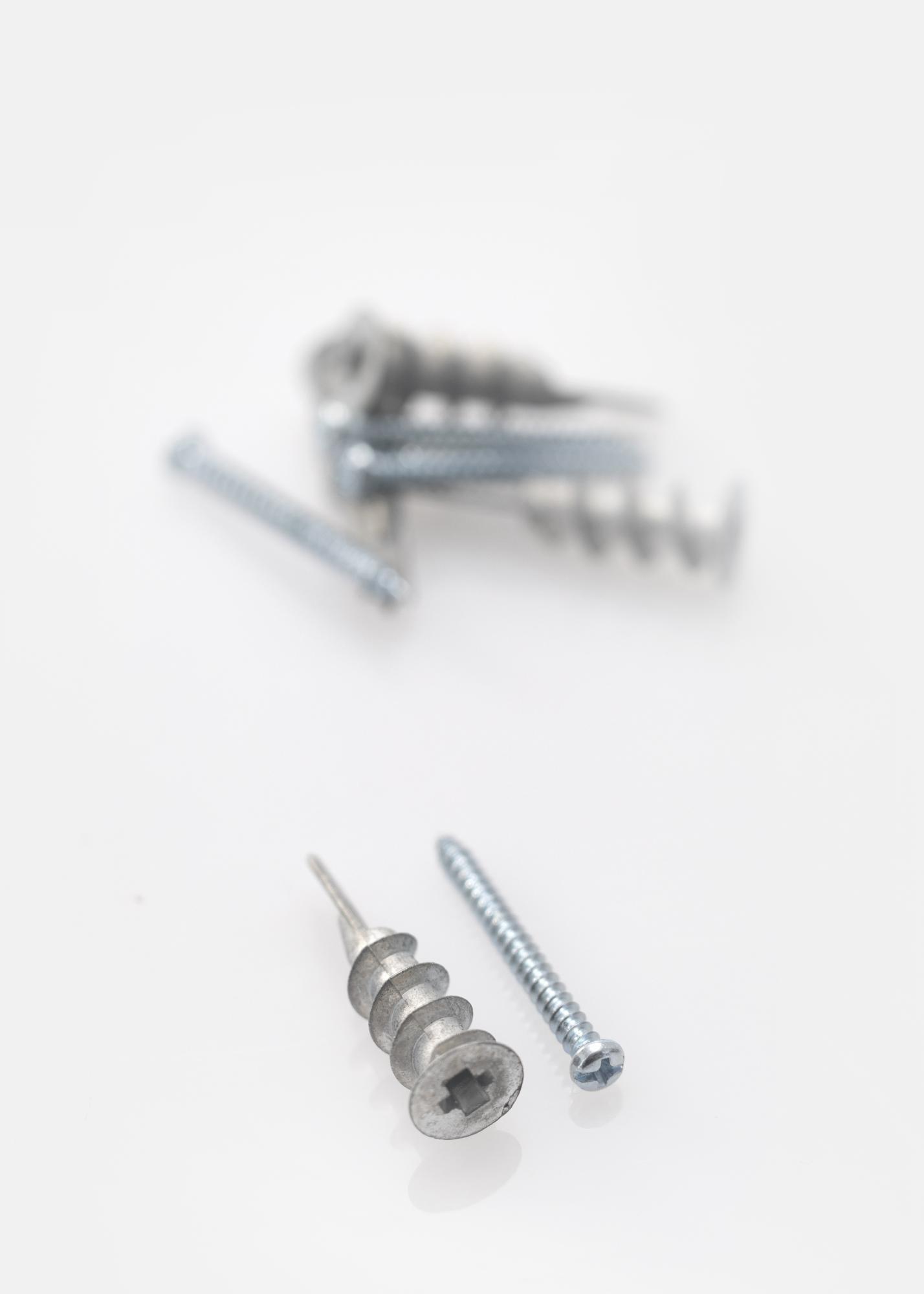 Samoswiercające kotwy do płyt kartonowo-gipsowych w 4-paku. Wystarczy wkręcić kołek, a potem śrubę, i gotowe. Nie musisz wiercić. Idealnie pasują do wszystkich naszych obrazów, które mają być zawieszone na ścianie z płyt gipsowych.
