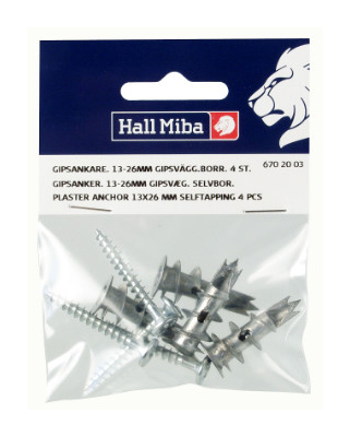 Wkręt, Śruba i Kołki samowiercące do ścian gipsowych - 4-pak (13x26 mm)