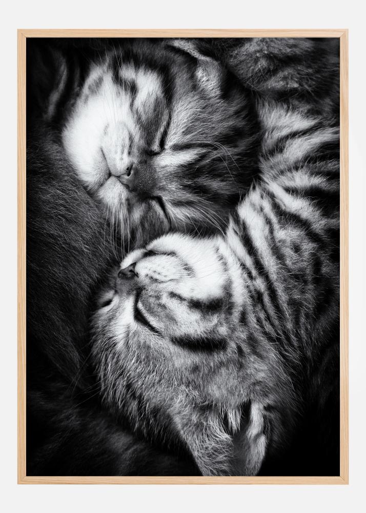 Uroczy plakat ze zwierzętami z dwoma śpiącymi kociętami. Kup ten wydruk i ciesz się uczuciem przytulenia, patrząc na te urocze kotki, które się przytulają.